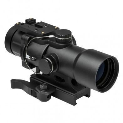 Integrated Auto Locking Quick Release Mount, fits Weaver/ Picatinny/ MIL-STD 1913 type rails. The QR Picatinny base can be removed from the scope base and the CPO optic can be mounted onto AR15/M4 carry handles with the supplied thumb nut. The integrated See-through carry handle mount allows the shooter to use iron sights.