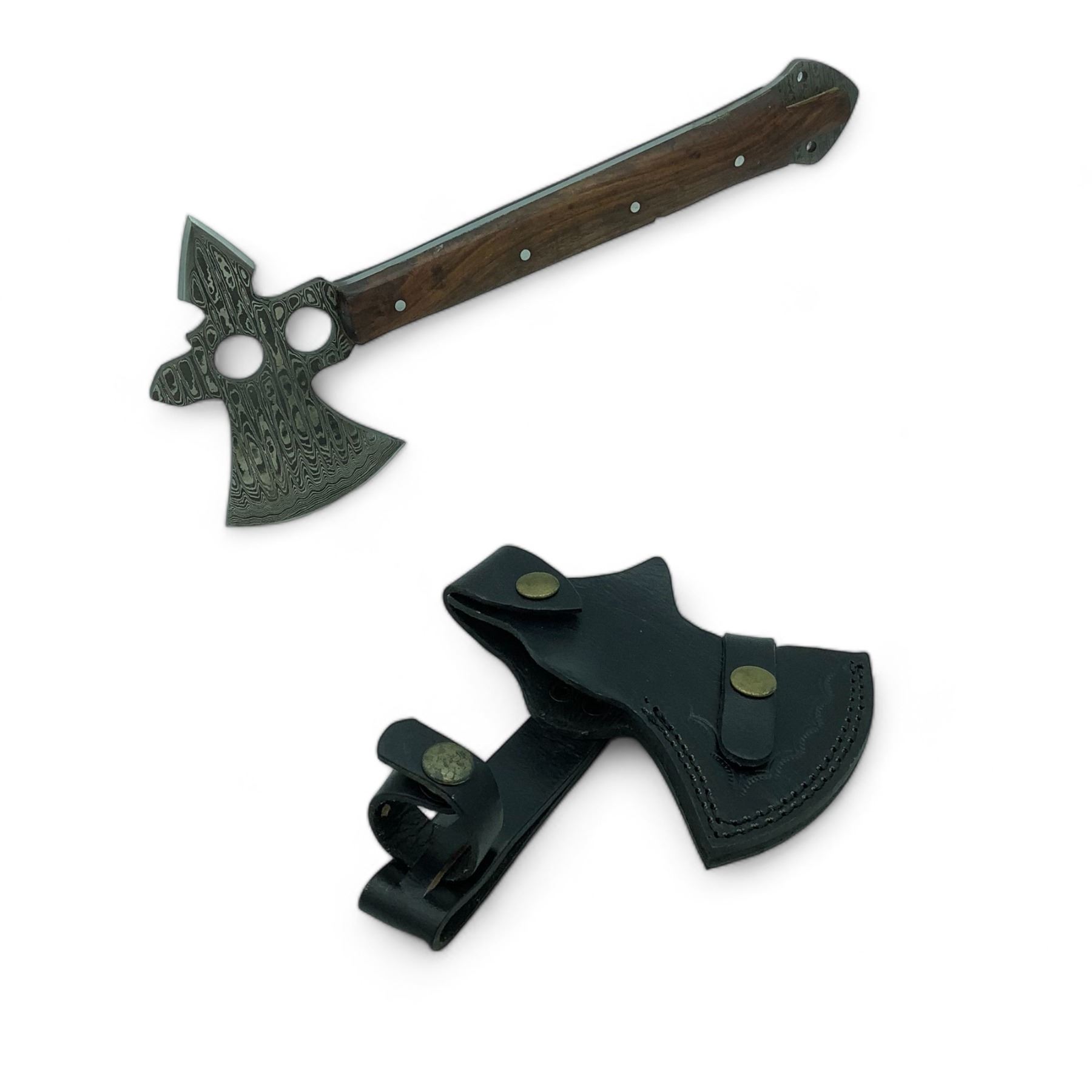 Hand Forged Damascus Tomahawk with 3 1/4" Blade in Leather Sheath