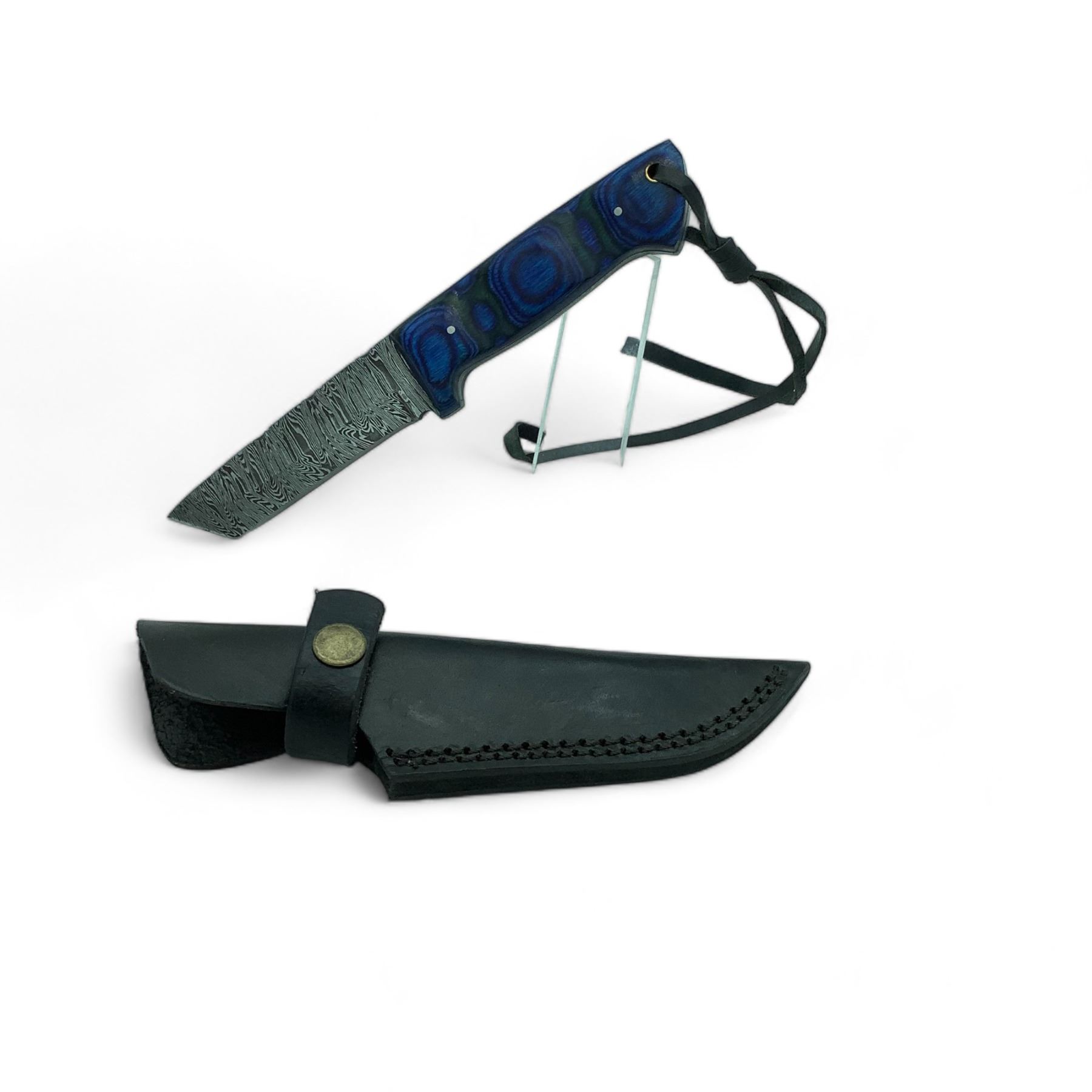 Hand Forged Damascus Fixed 3 3/4" Blade Knife with Leather Belt Sheath