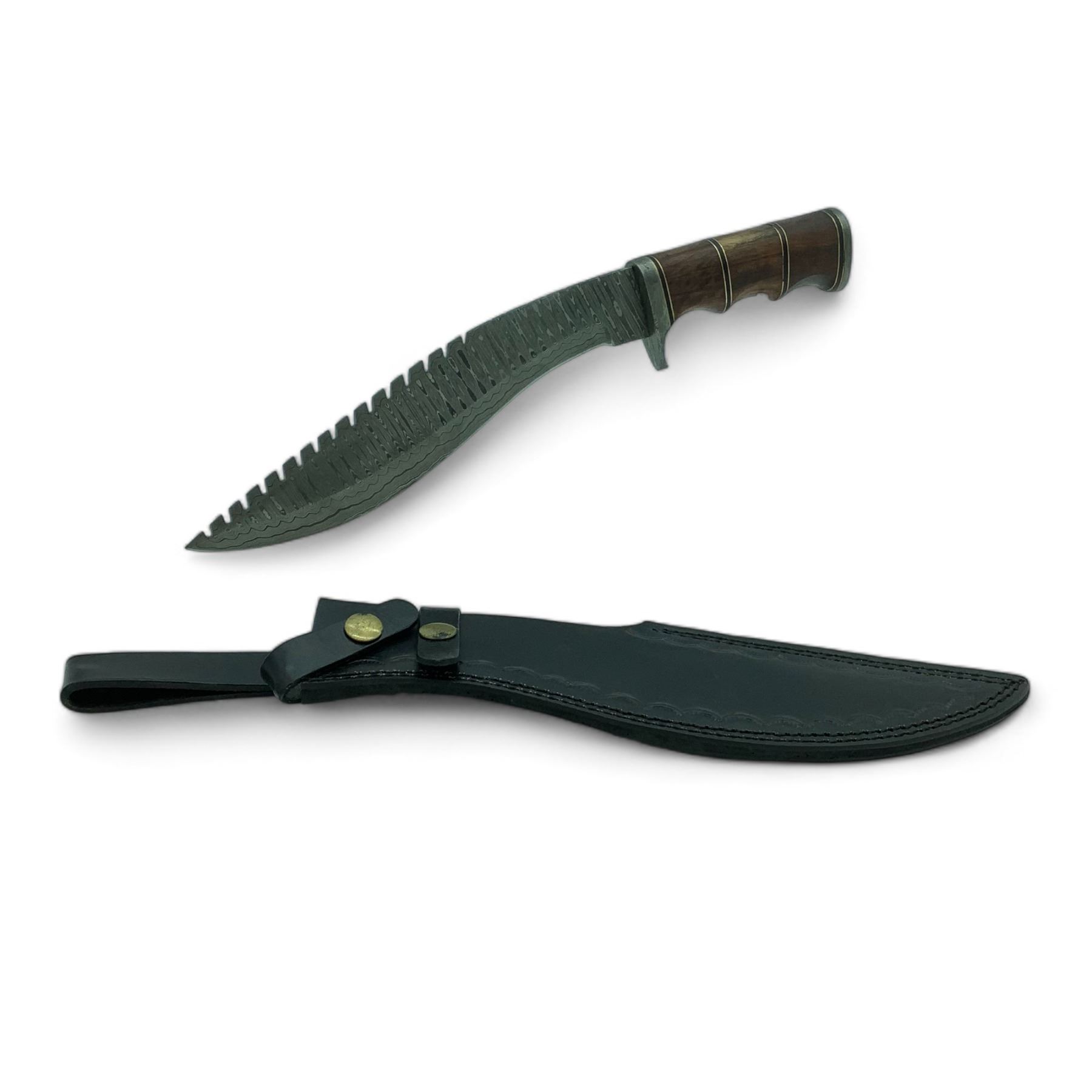 Hand Forged Damascus Fixed 10" Blade Kukri Knife with Leather Sheath