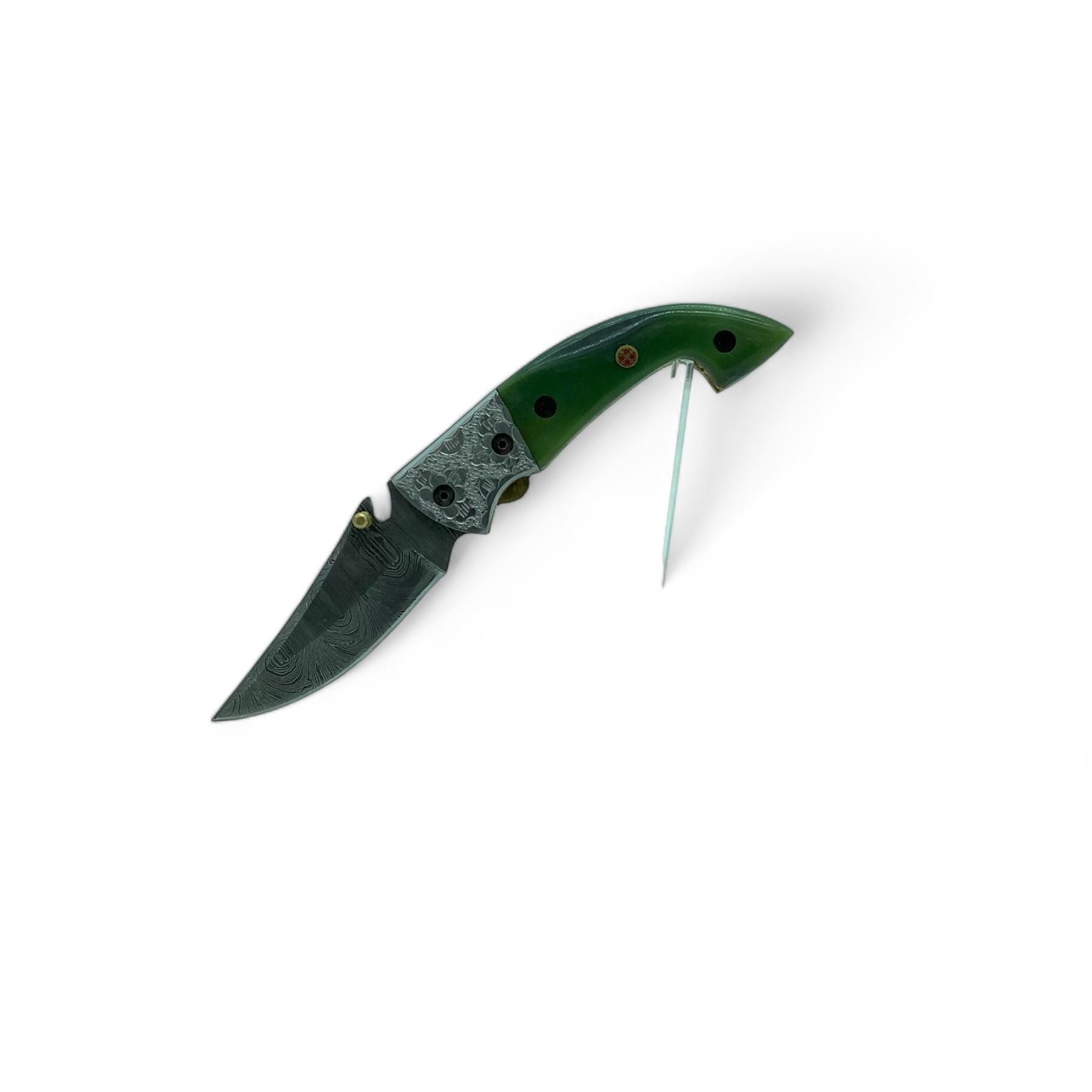 Hand Forged Damascus Folding 3" Blade Pocket Knife with Jade Coloured Handle