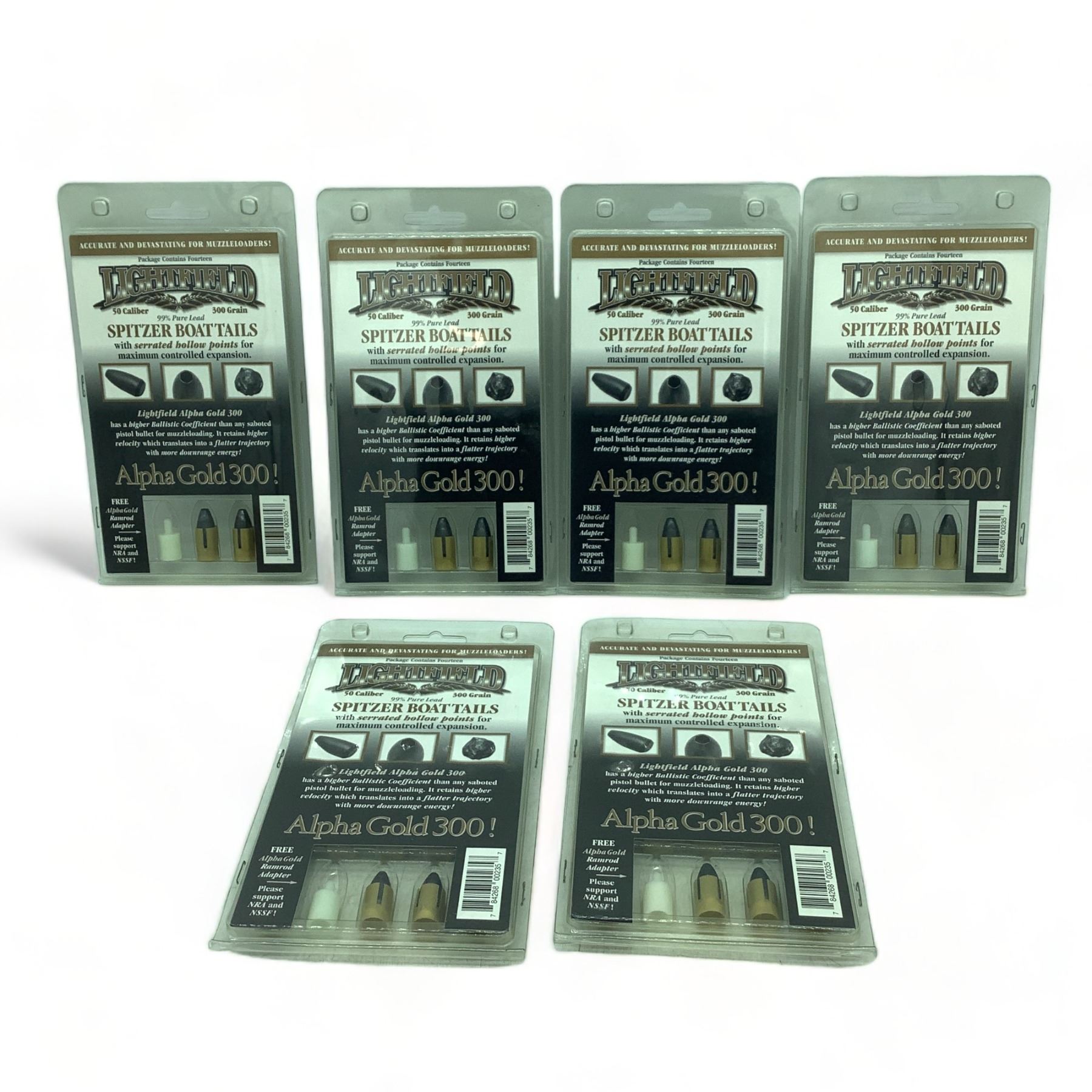 Lot 2923 Lightfield Alpha Gold 50 Cal 300 Grain Muzzleloading Projectiles, 14 Pk X 6