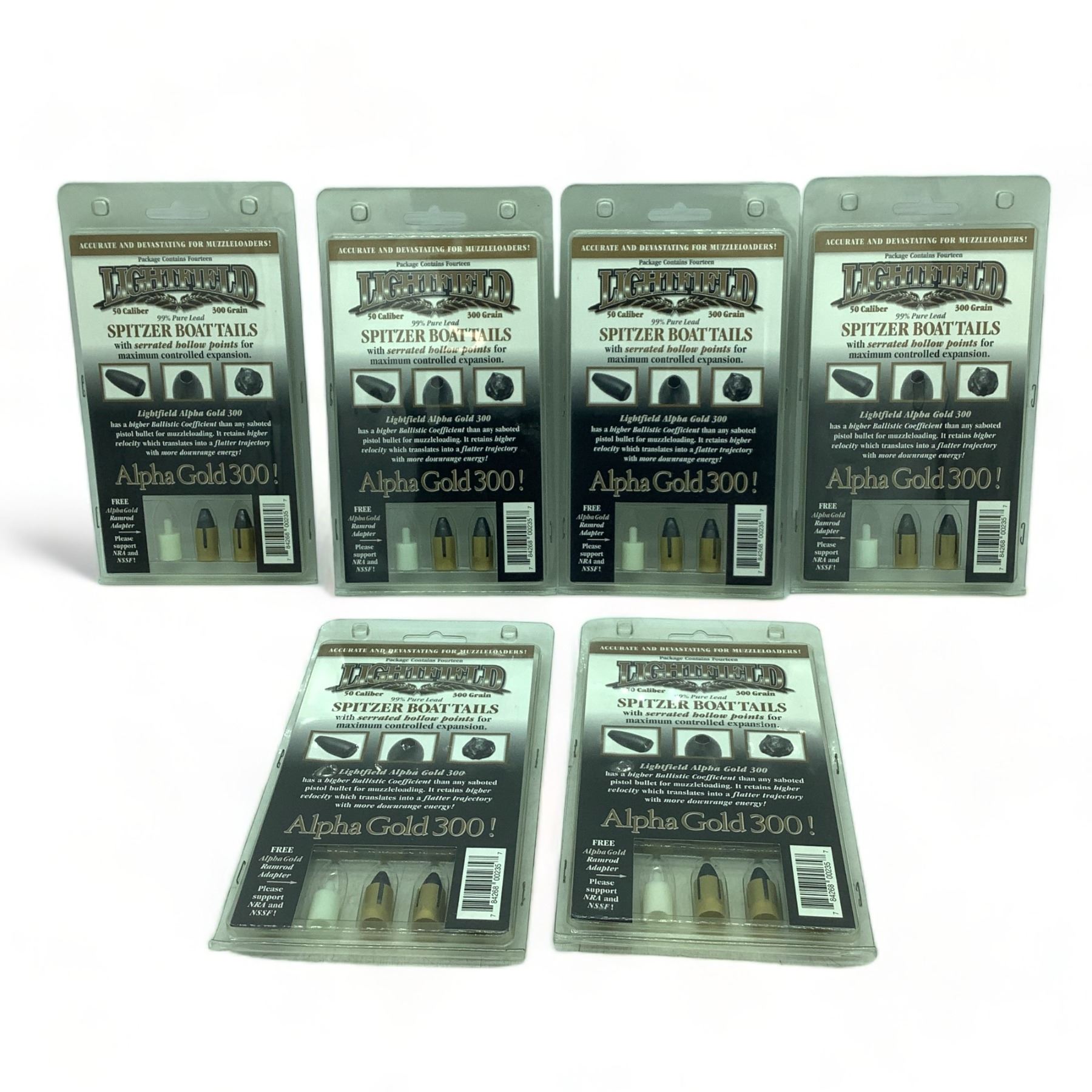 Lot 2925 Lightfield Alpha Gold 50 Cal 300 Grain Muzzleloading Projectiles, 14 Pk X 6