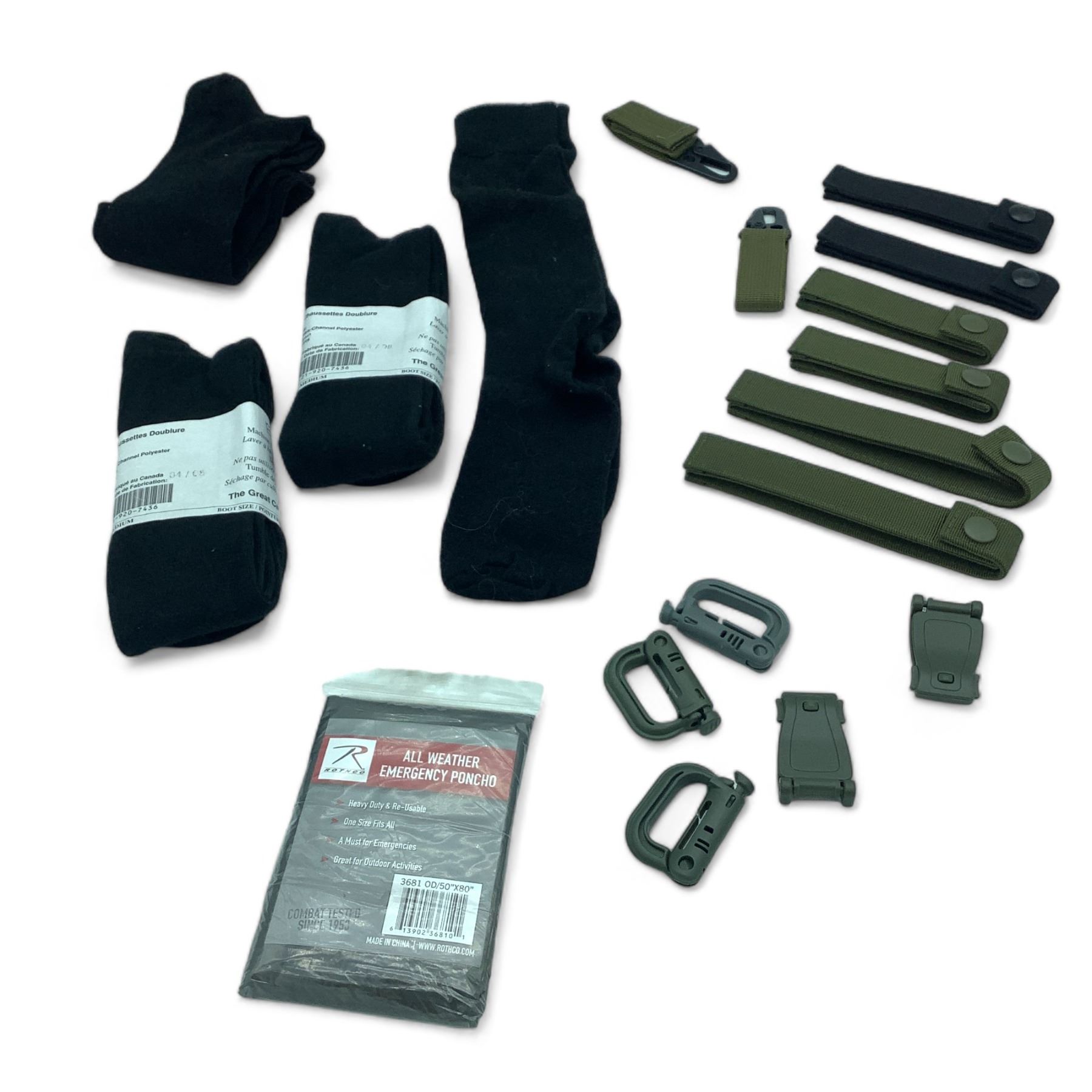 Sock Liners, Size Med X 4, Emergency Poncho, Carabiners, Molle Attachments