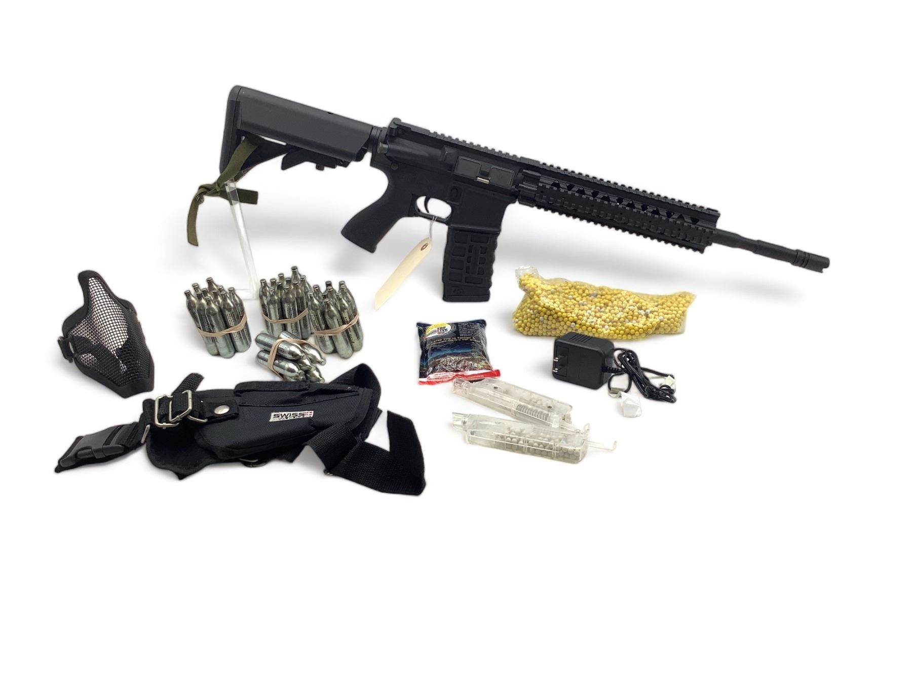 Combat Machine 6 mm Air Soft Gun, Face Mask, Handgun Holster, CO2 Cartridges and Projectiles