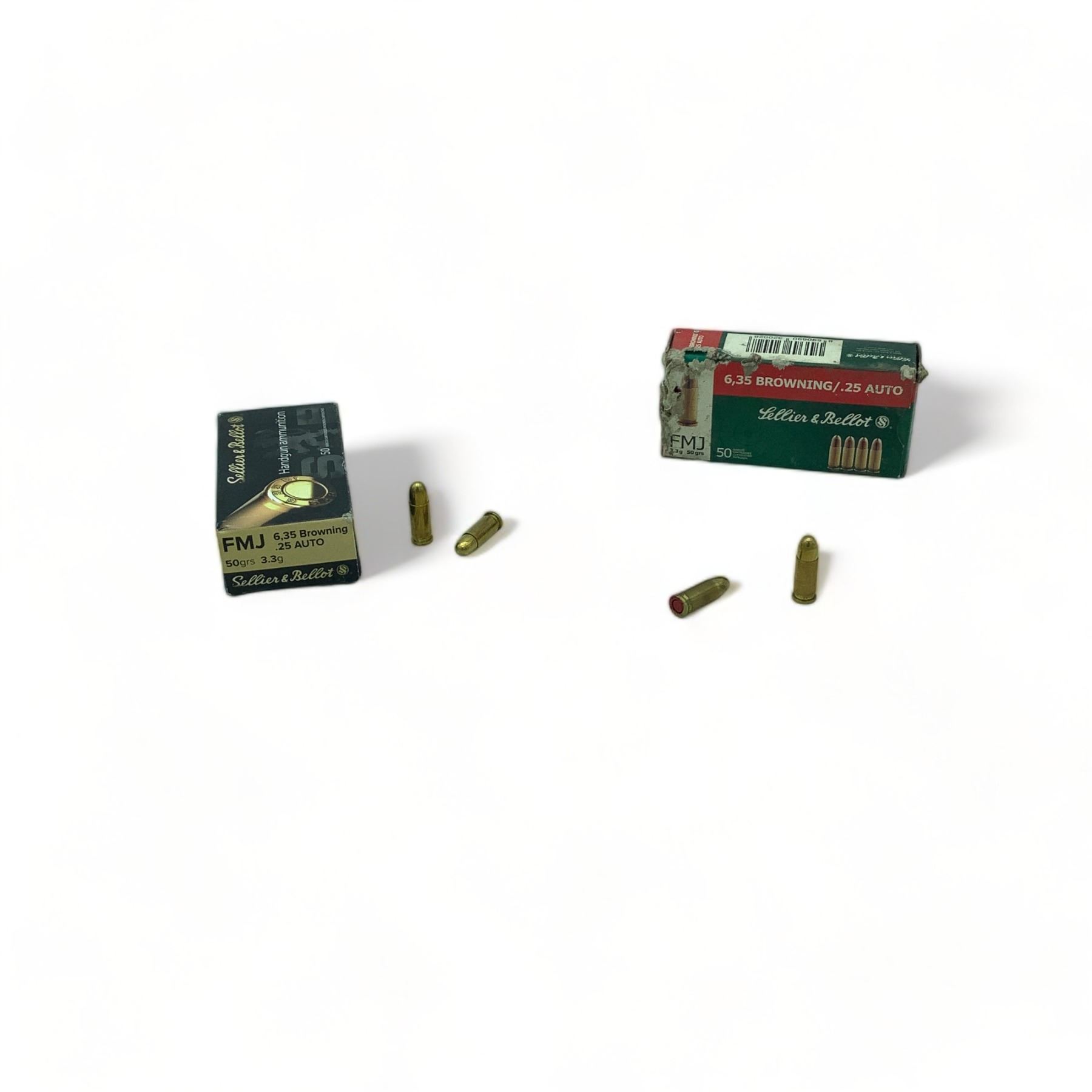 Lot 2930 Sellier & Bellot 6.35 Browning 25 Auto 50 Grain FMJ Ammunition, 100 Rounds