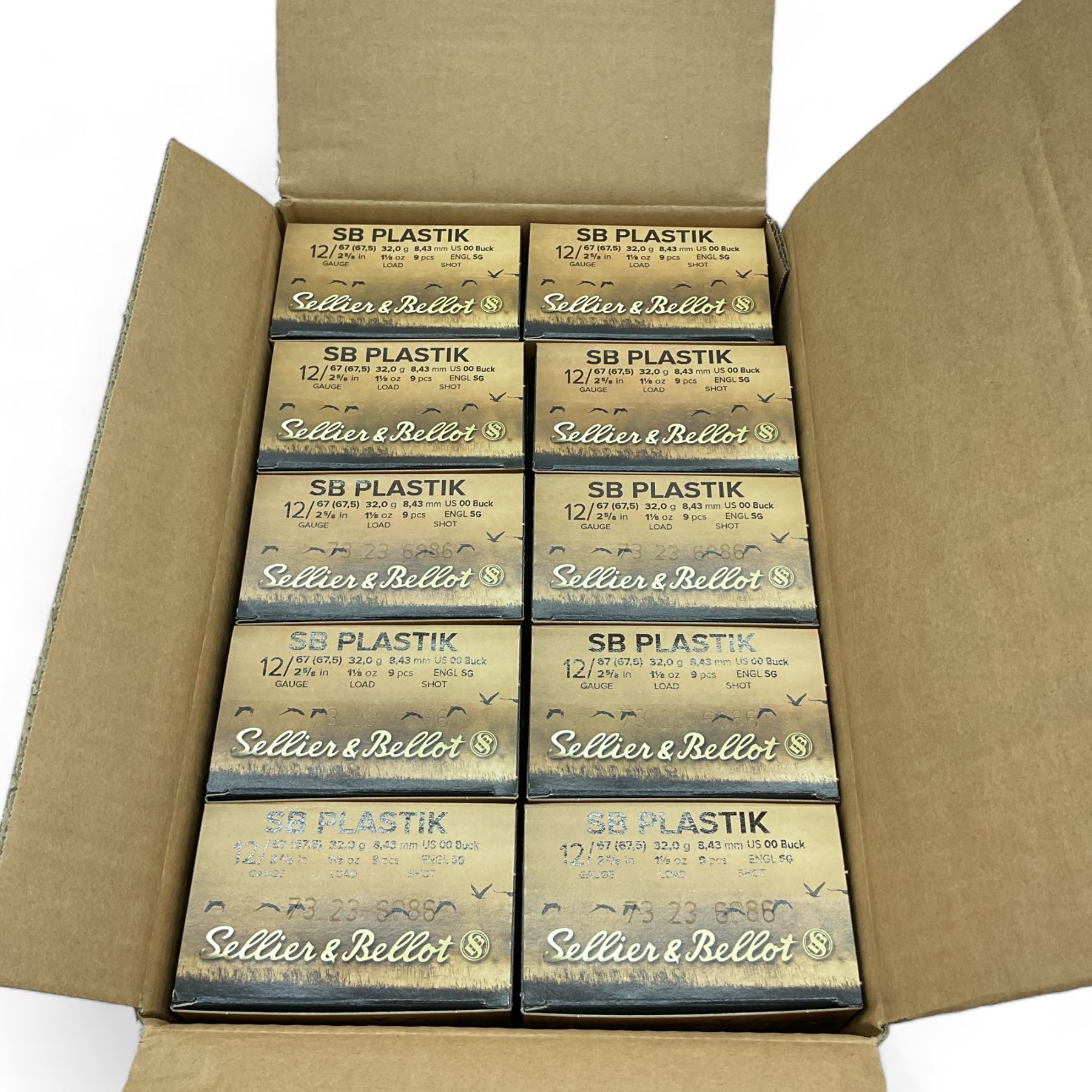 Lot 1956 Sellier & Bellot Plastik 12 Ga 2 5/8" 9 Pellet 00 Buckshot Ammunition, 250 Round Case