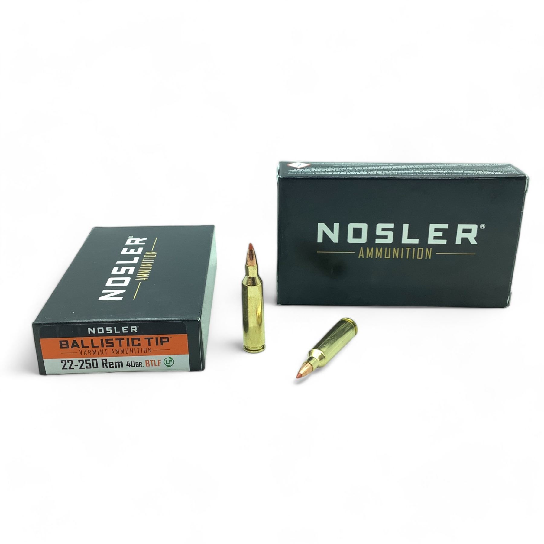 Lot 2474 Nosler Ballistic Tip Varmint 22-250 Rem 40 Grain BTLF Ammunition, 40 Rounds