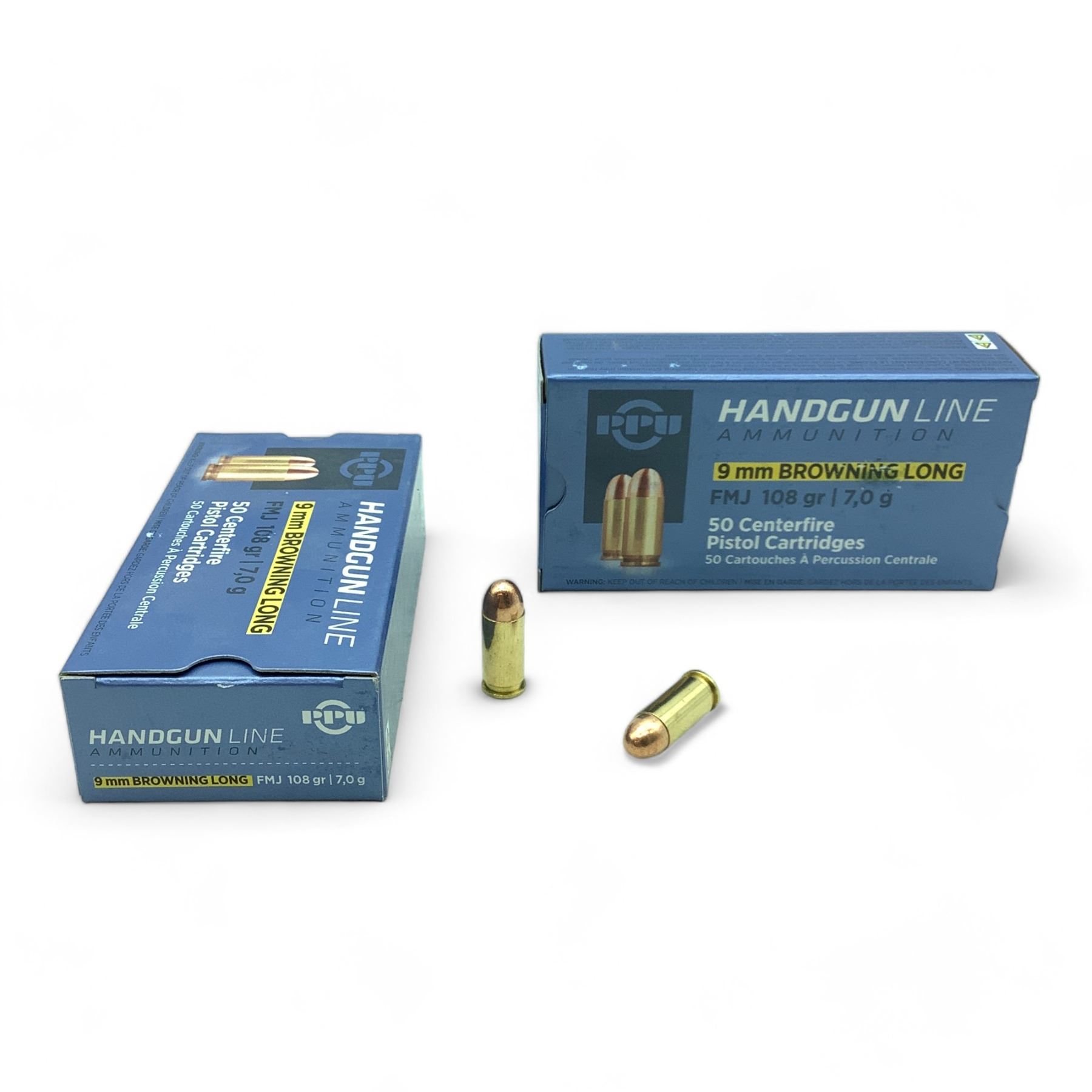 PPU Handgun Line 9 mm Browning Long 108 Grain FMJ Ammunition, 100 Rounds