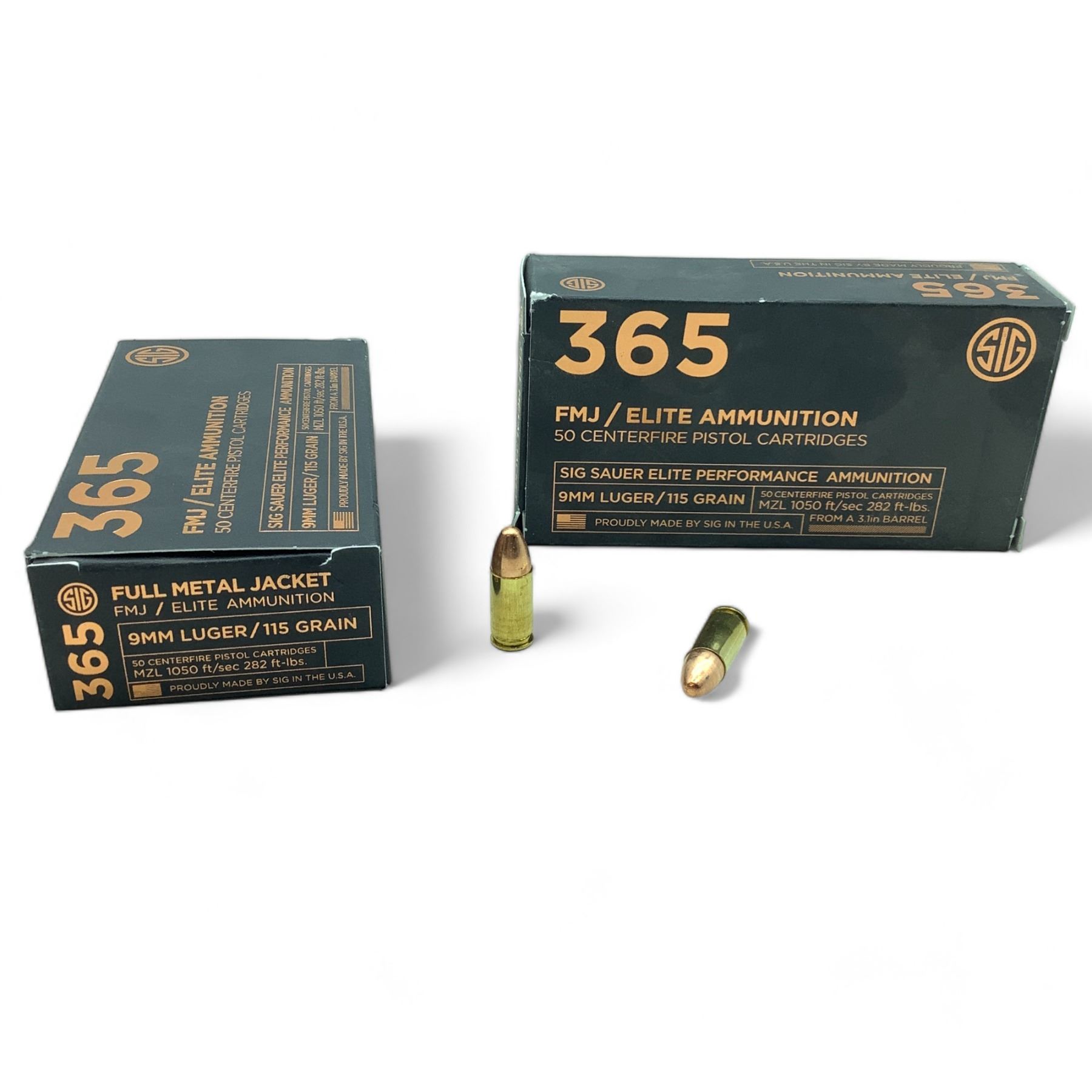 Lot 2523 Sig Sauer 365 Elite Performance 9 mm Luger 115 Grain FMJ Ammunition, 100 Rounds