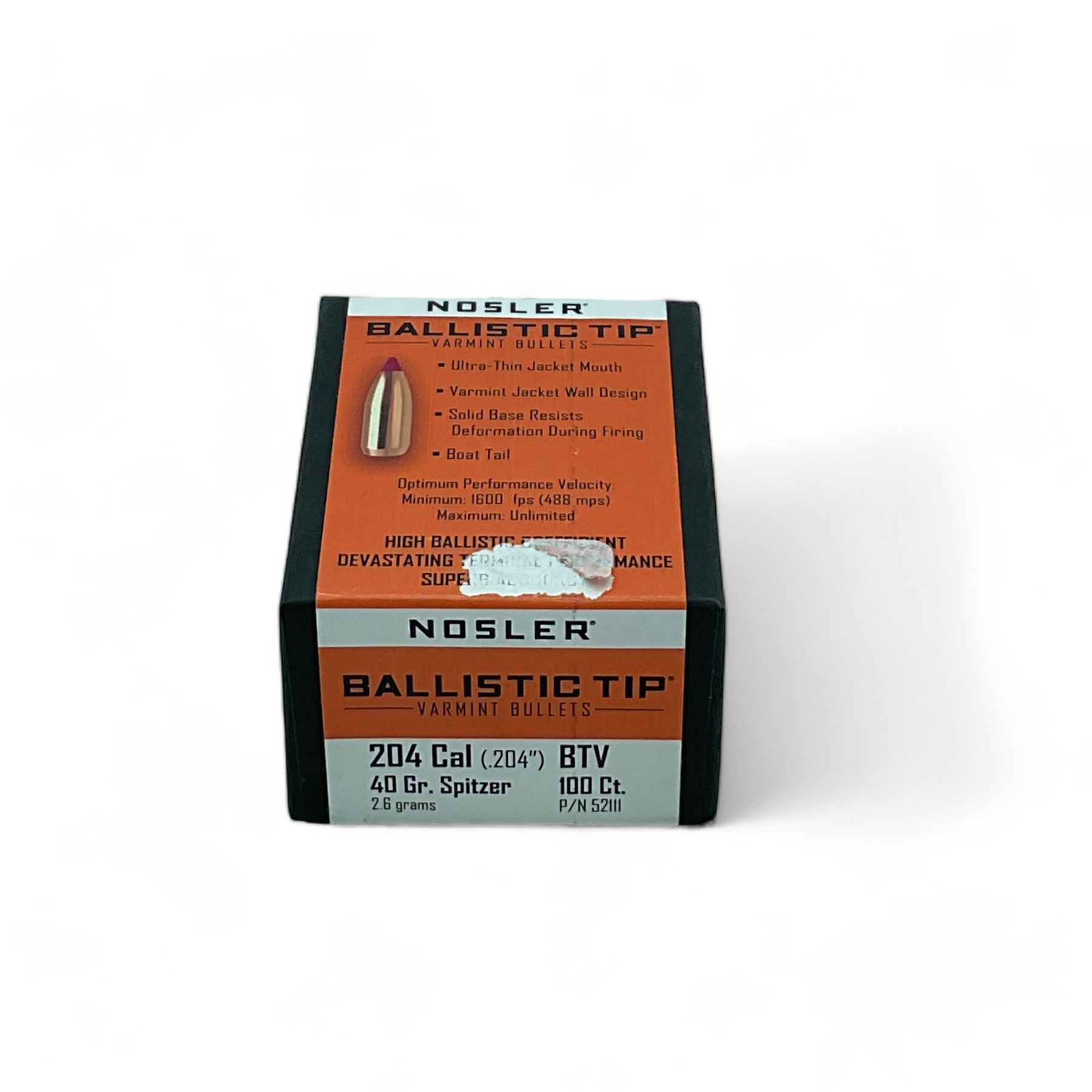 Lot 258 Nosler Ballistic Tip Varmint 204 Cal .204" 40 Grain Spitzer Projectiles, 100 Qty