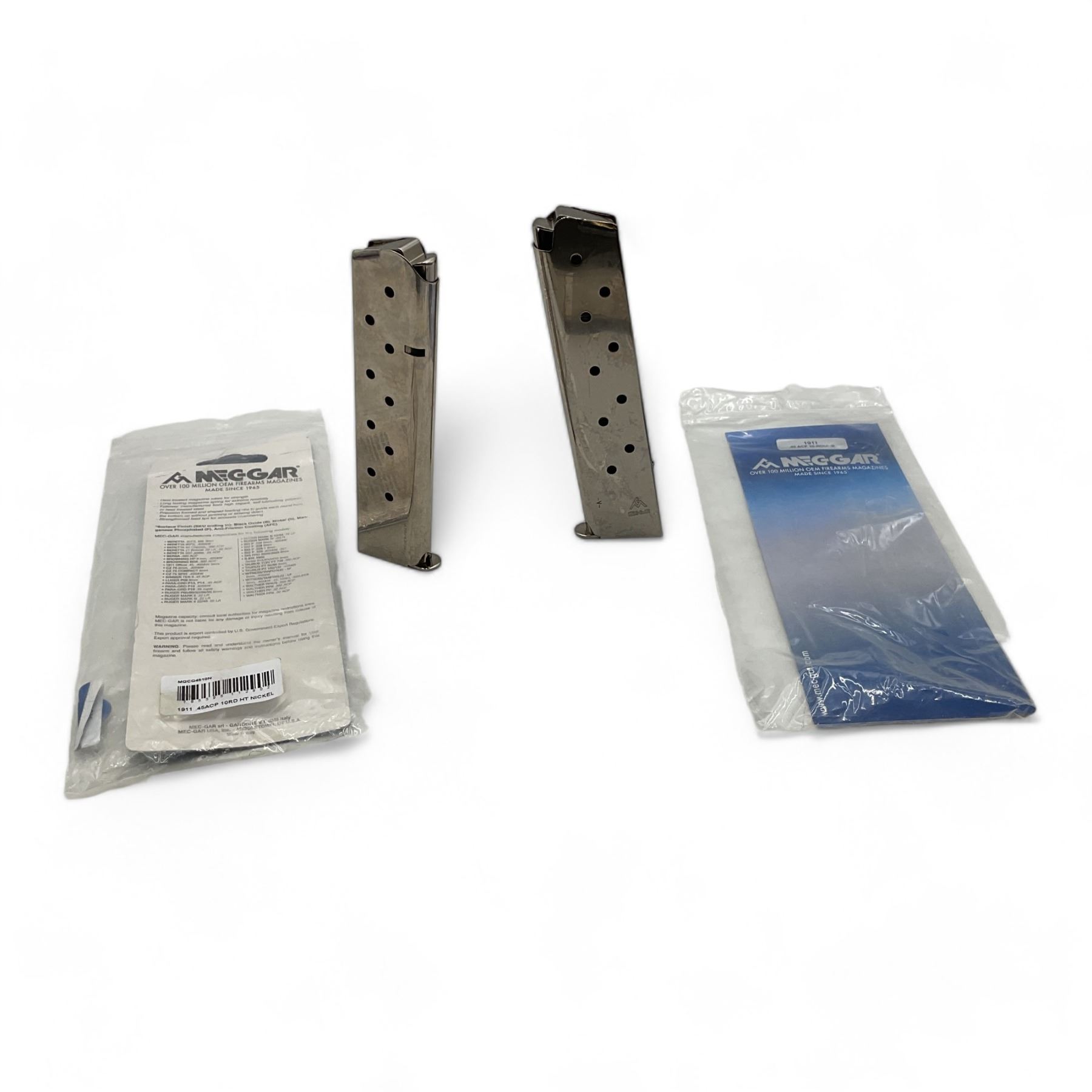 MecGar 45 ACP 1911 10 Round Pistol Magazine, Nickel X 2 Qty