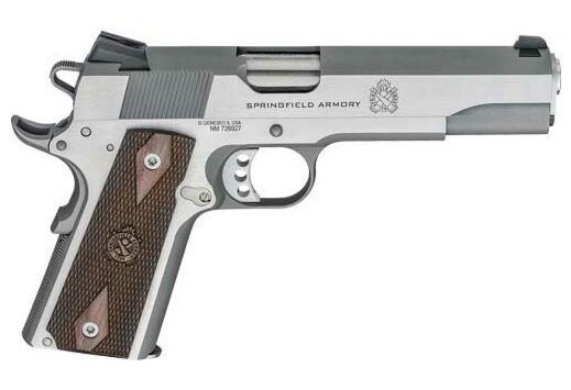 FEATURES: Subtle matte finish on the rounds and a high polish on the flats, the stainless steel Garrison 1911 features rugged rust-resistant quality Solid construction and rust-resistant material Garrison’s stainless steel 9-round magazine Checkered thinline wood grips of the Garrison 1911 feature a double-diamond pattern with the Crossed Cannon™ logo