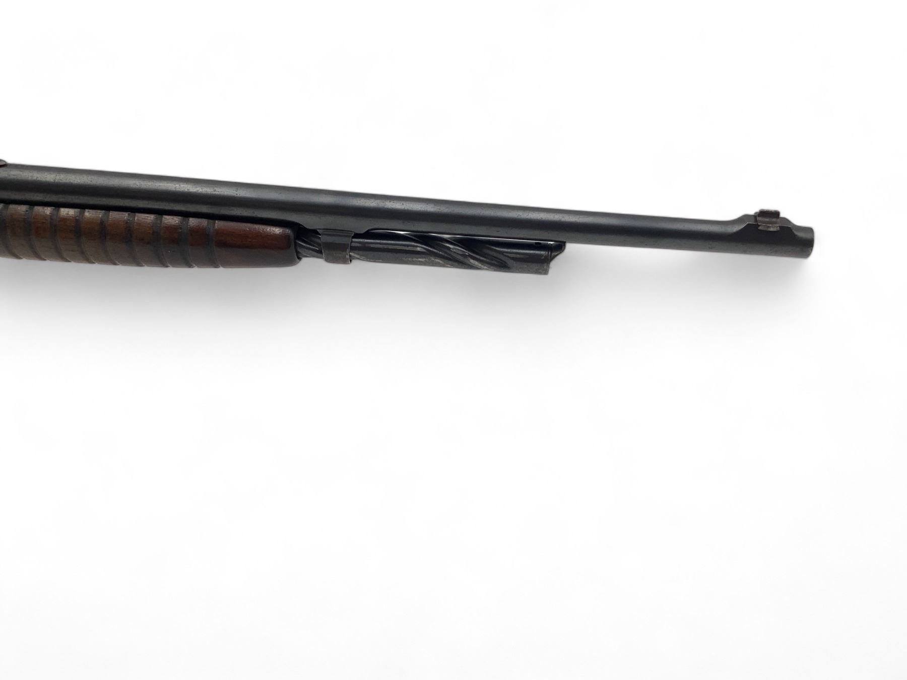 Remington Model 14 Pump Action Rifle .32 Rem 22" Barrel Wood Stock. Fixed front sight, adjustable rear sight. Receiver drilled and tapped. Serial number C76913. This is a non-restricted firearm.