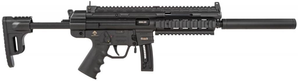 This light weight, tactical style .22lr caliber rifle is every plinking master's dream come true! Based off of the classic GSG 22 caliber rifle operating system, the GSG-16 features several enhancments to give it a dashing new look for the next generation of shooters. The GSG-16 features a newly designed collapsable stock that also serves as an additional magazine storage compartment for either high or low capacity magazines. The re-designed forend features standard picatinny rails mounted onto an MLOK style hand guard. The cocking tube assembly features an ambidextrous charging handle so you can swich up charging rounds to meet your comfort style. Finally, the redesigned front and rear sight have been simplified and streamlined to give the shooter faster target acquisition over previous GSG models. Whether you're just starting out fresh, or dusting off your old GSG mags to throw some lead down range, the GSG-16 is a fun and affordable .22lr gun that deserves a spot in your collection today!
