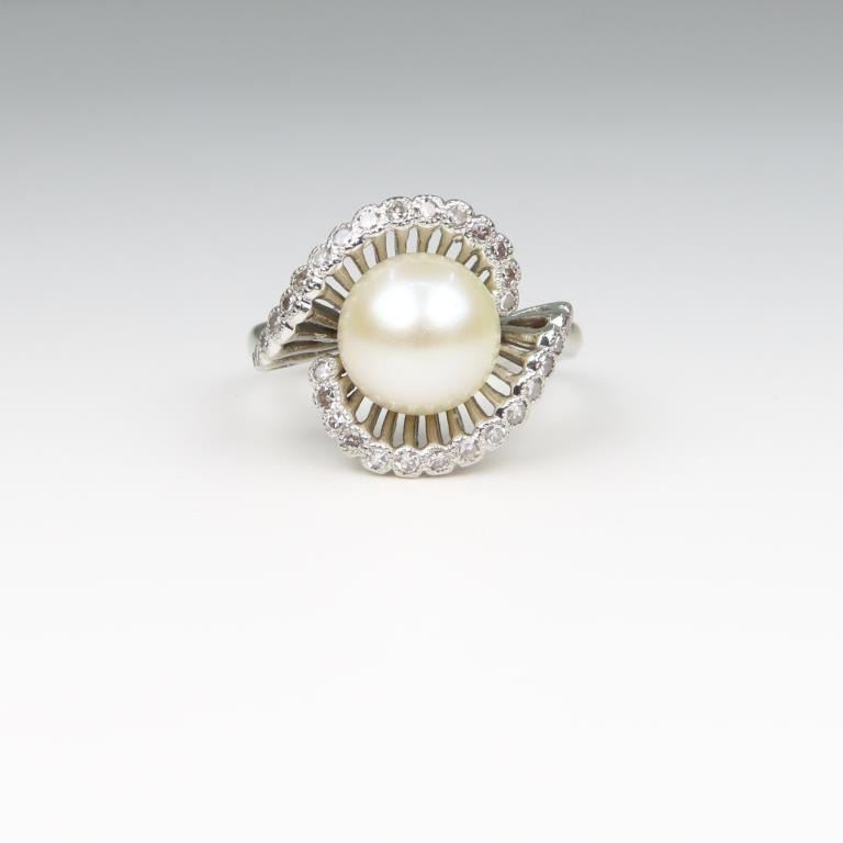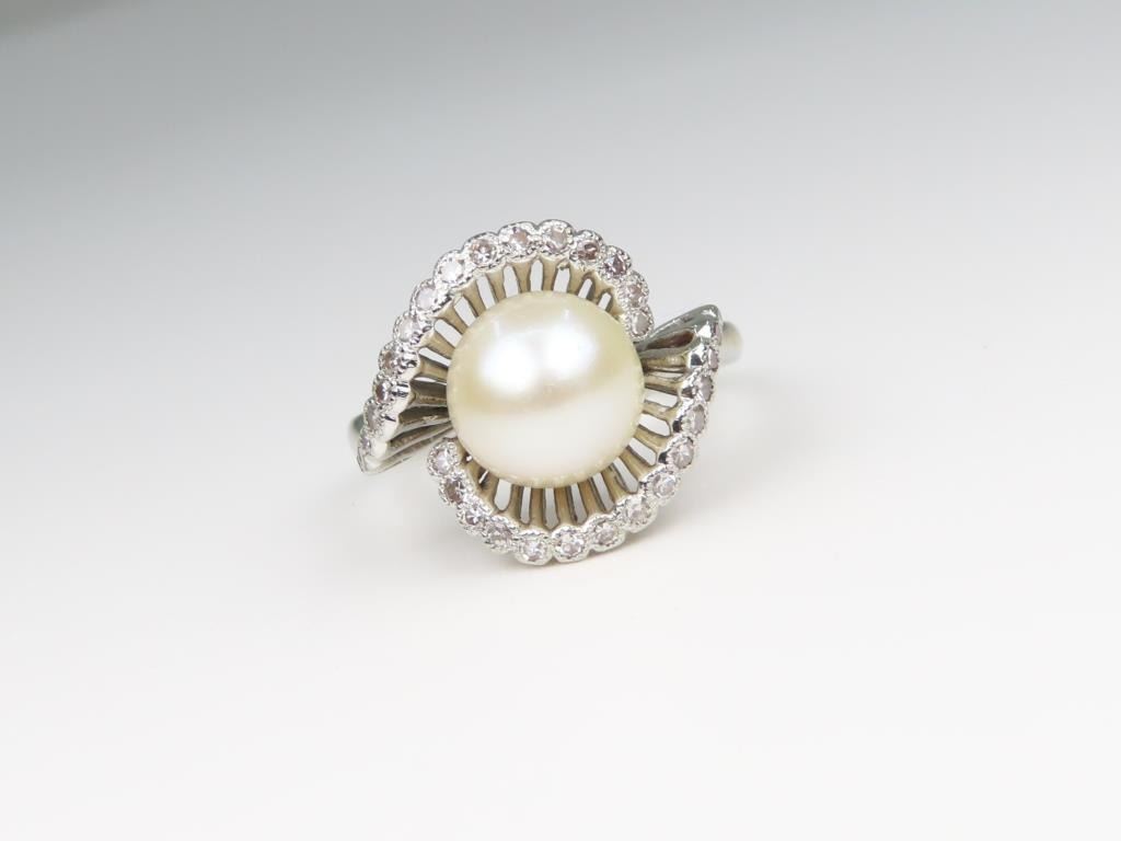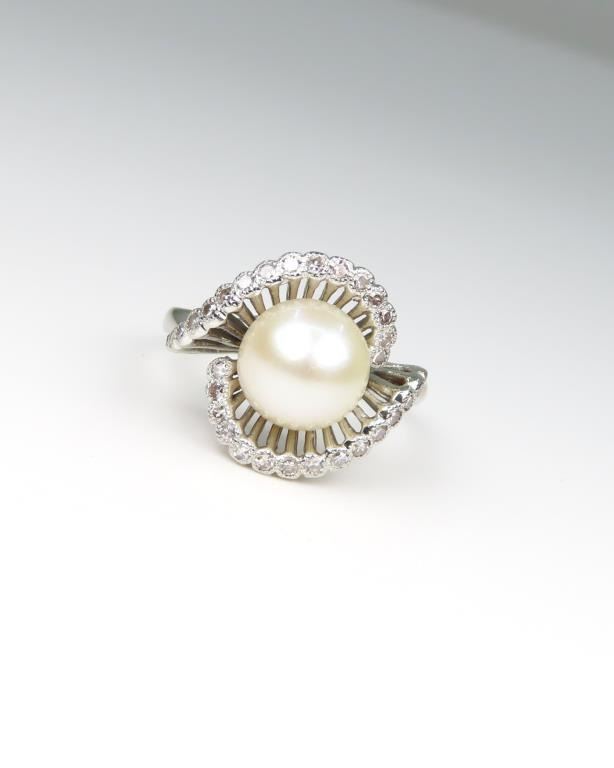 Lot 918a Beautiful Vintage Pearl and Diamond Ring