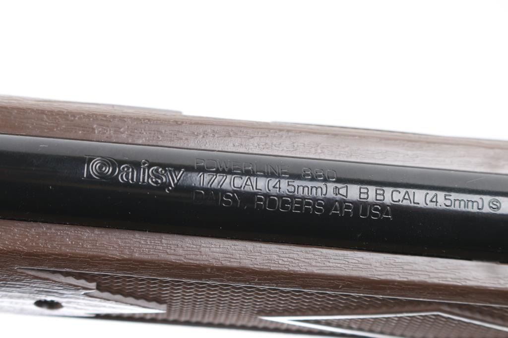 1) Daisy Powerline 880 pump air rifle with Daisy 4x15 scope , truglo optic sight., 177 cal. With factory box. 2) Crosman Benjamin-Sheridan 397 pump air rifle. .177 Cal. With factory box. 3) Daisy Red Ryder Carbine for parts or repair & 4) Daisy No 25 for parts or repair