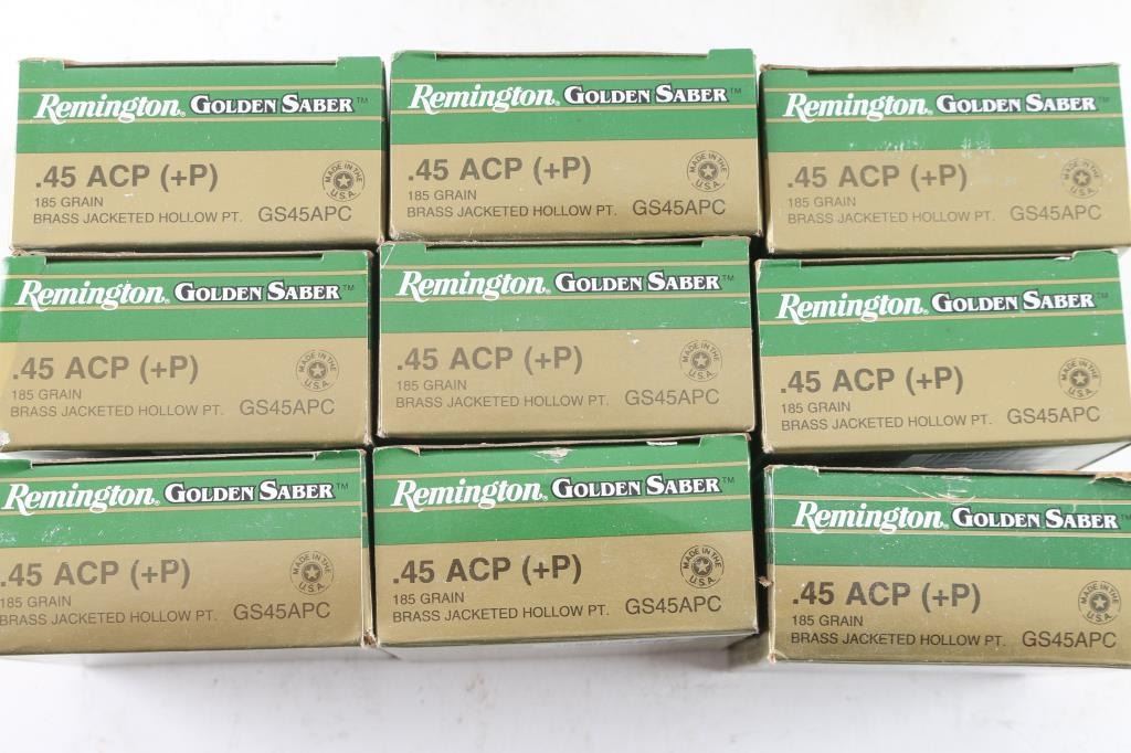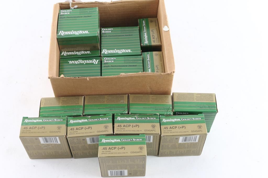 Approx. 500 rounds of 45 ACP factory new ammunition. 20 factory boxes of Remington 185 Gr. JHP. 25 rounds in each. All in 1 case.