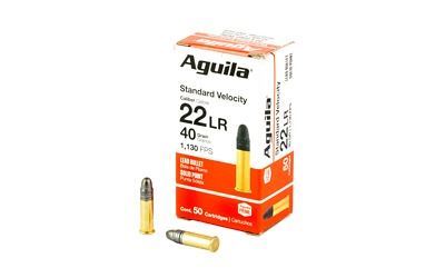 Aguila Ammunition, Rimfire, 22LR, 40 Grain, Solid Point, Standard Velocity, 50 Round Box