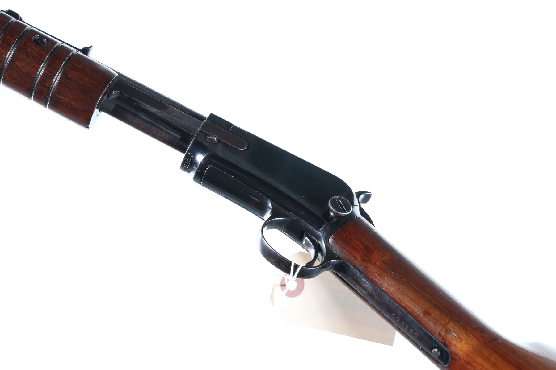 .22 LR Serial # 128150 Winchester Model 62A 22 S-L-LR pump rifle with varnished walnut stocks and factory sights. Condition, Very good as refinished with excellent bore and British proofs. Stocks are very good with period of use impressions and bruises. Mechanically excellent. Barrel 23" 1941 C&R