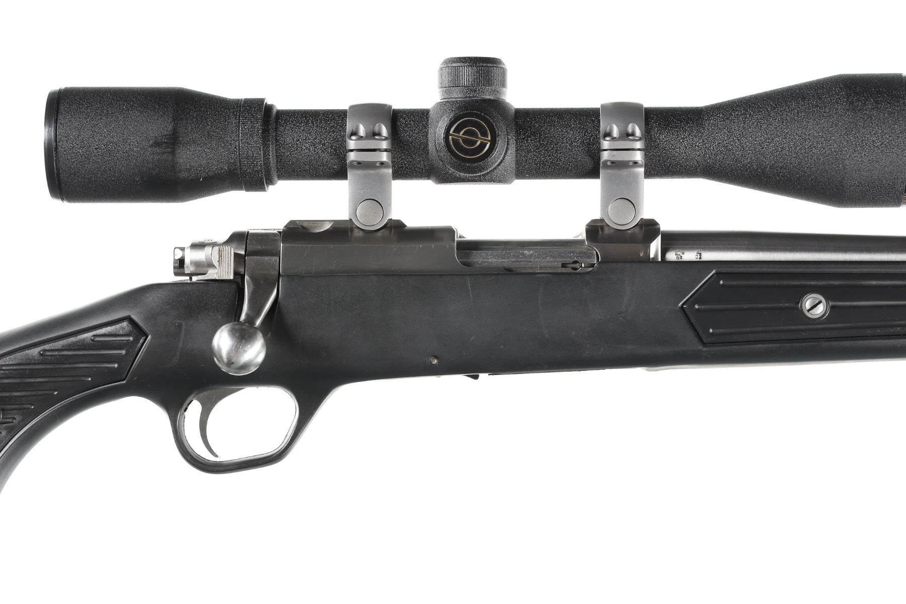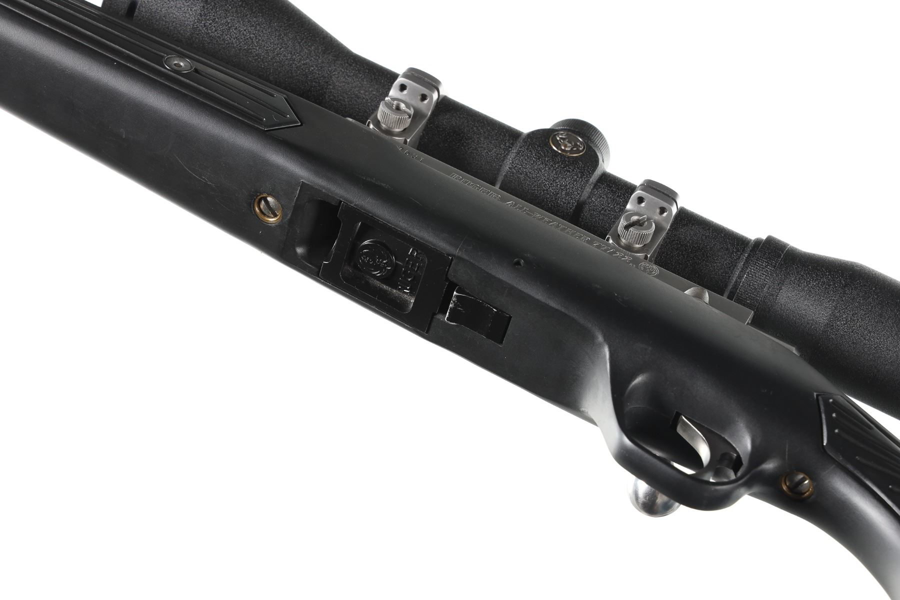 .22LR Serial # 702-47631 Ruger M77/22 All Weather stainless steel with Synthetic All Weather stock and 10 round rotary magazine. Bbl threaded. Mounted with Simmons 4X scope. Condition, Very fine with some light use evident. Stocks is very fine mechanically excellent. Sling swivel; added for Bipod use. Barrel 20" 2003 Modern