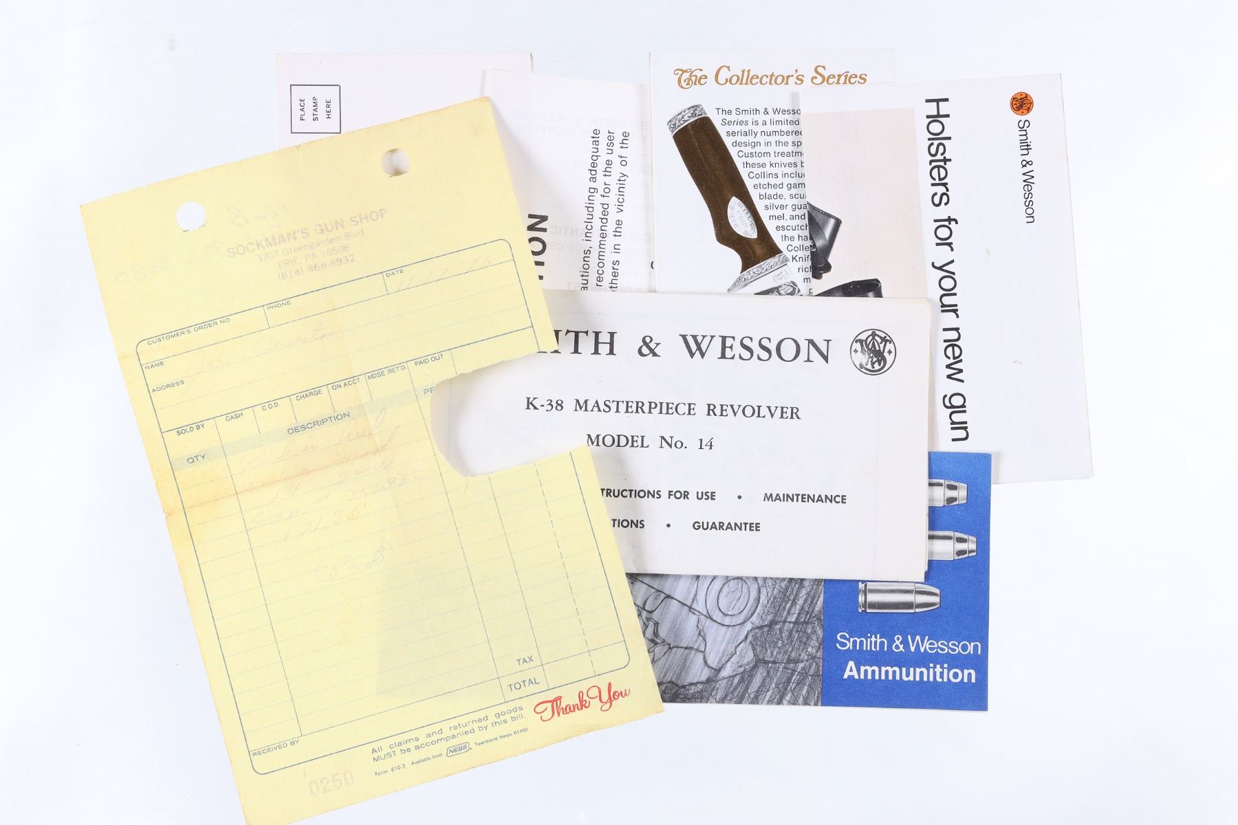 .38 spl Serial # 8K36985 Smith & Wesson K-38 Masterpiece. Factory Single action only, target trigger, hammer, grips. Includes factory box renumbered to match. Condition Very fine with just a trace of use. Bright bore and chambers. Grips are very good with a few minor blemishes. Barrel 6" Modern