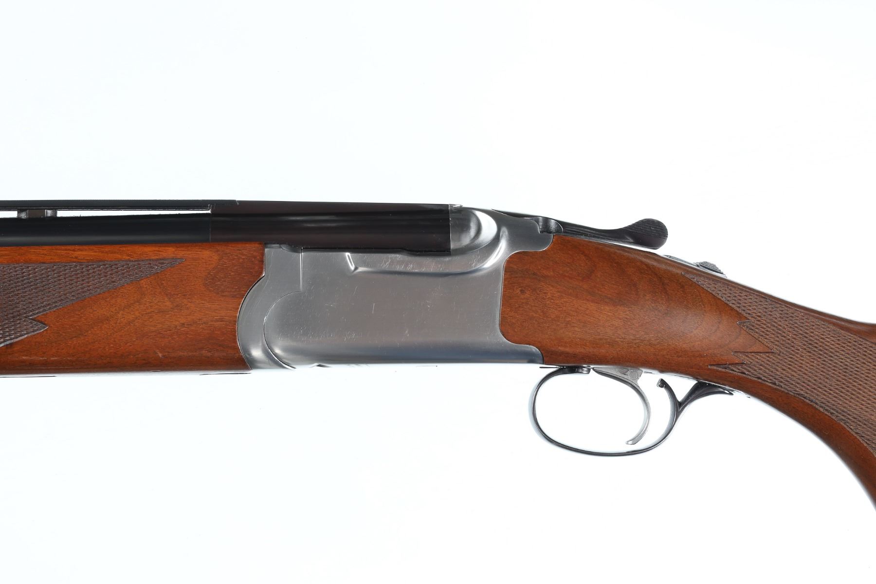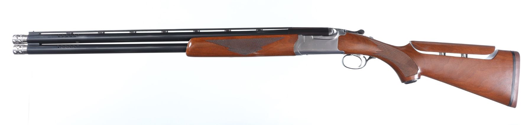 12ga Serial # 410-30327 Ruger Red Label Over under 12Ga, shotgun with stainless steel receiver, Single selective trigger and ejectors. 3" mag, chamber with 26" vent rib Bbl with interchangeable chokes. Installed are ported Rhino Cyl & Skeet chokes. Varnished walnut pistol grip stocks with adjustable comb. 14 LOP. Condition. Excellent as customized with adjustable comb, ported Bbl and chokes. Mechanically excellent. Mfg. 1988 Barrel 26" Modern