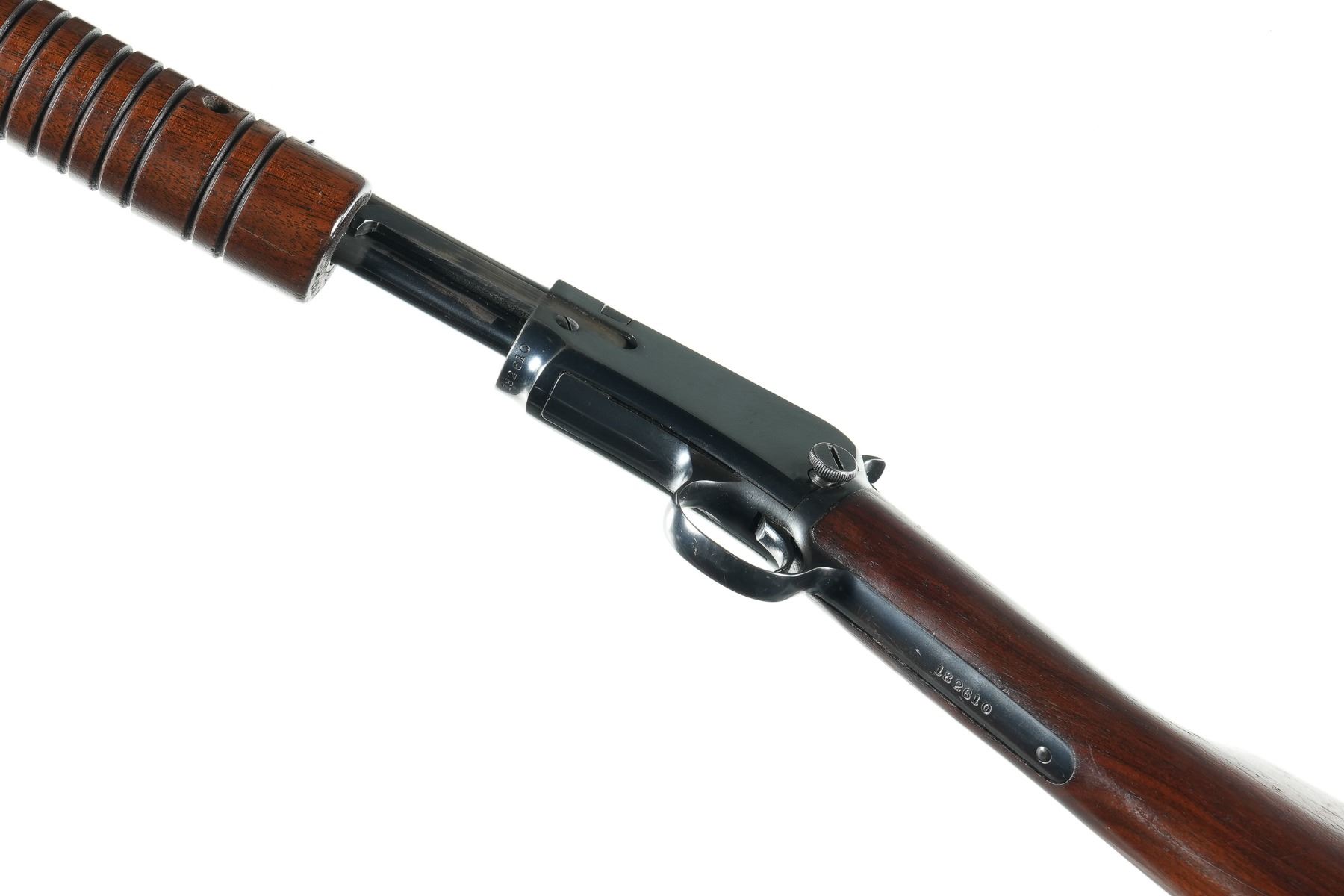 .22 sllr Serial # 182610 Winchester Model 62 Round bbl 22-S-L-LR. Very fine overall with moderate use and good bore. Mechanically fine Manufactured in 1947 per Madis. Barrel 23" C&R