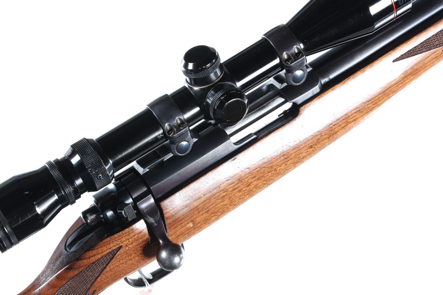 .22 LR Serial # 701-85855 Ruger M77/22 Bolt rifle with 10 round rotary magazine Mfg. 2000. Walnut stock , 20" Bbl with muzzle brake. Mounted with factory rings and Simmons 3-9 variable scope. Condition, Fine with light use and some minor finish wear. Loss of finish at magazine latch. Mechanically excellent. Optics are clear. Barrel 20" 2000 Modern