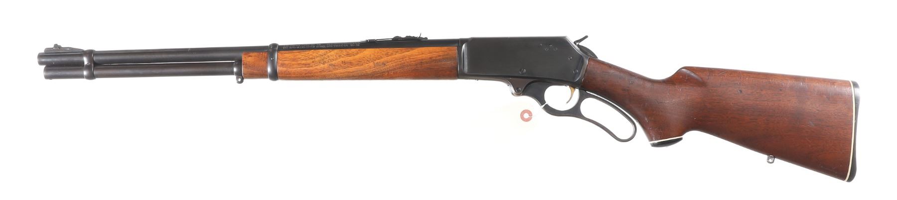.30-30 win Serial # AD2141 Marlin Model 336RC Cal, 30-30 with 20" round Bbl, Varnished walnut stocks with plain pistol grip and white line butt plate and pistol grip cap. Ramped blade front sight with sporting adjustable rear sight. Mfg, 1968 without cross bolt safety.Micro-Groove Barrel. Condition, Very fine with over 95% blue finish remaining. Bore is bright. Mechanically excellent with solid lock up. Stocks are very good with moderate period of use wear and light impressions. C&R Barrel 20" C&R