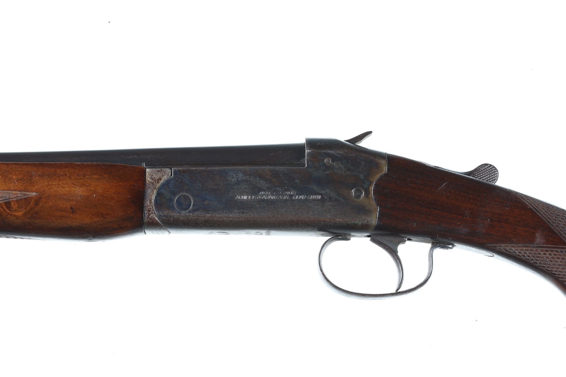 .410 Serial # 298494 AYA Cosmos 410 single Bbl shotgun with exposed hammer, case colored frame and 28" full choke Bbl with 2 1/2" chamber. 14 1/2" LOP. Condition. Good with functioning action and restorable little gun. Deteriorated butt pad. Barrel 28" 1969 C&R