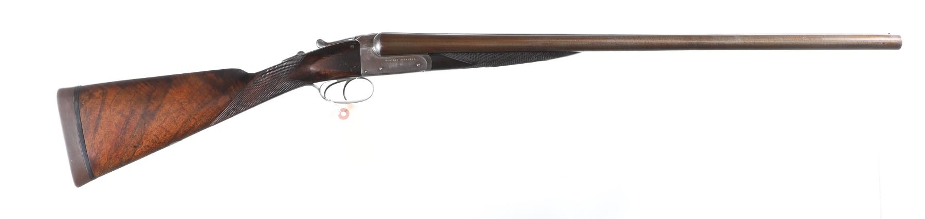 12ga Serial # 6603 Antique Westley Richards Double 12 Bore side by Side with 26" damascus Bbl,s. Double triggers with ejectors. Anson & Deely action with oil finished checkered straight English walnut stock and Splinter fore arm.Mfg 1882-1891. Condition Very fine with vivid Damascus pattern and silvered Box Lock receiver with "WESTLEY RICHARDS" gold filled in block lettering. 14 1/4LOP over Kick-Eez recoil pad with 1- 5/8 DAC& 2 1/4 DAH. Open choke & Skeet . 2-5/8" chambers. Stocks remain very good with period of use impressions and light wear. Lock-up is solid and previous owner was shooting Low Brass target loads until recently. Antique NO4473