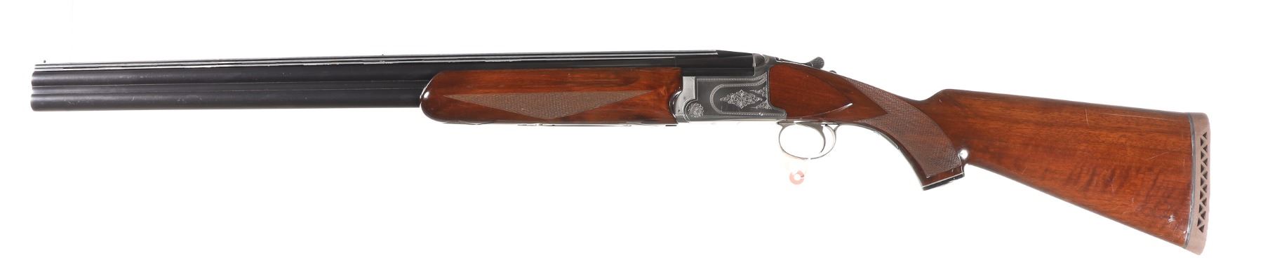 12ga Serial # SK804944 Nikko Shadow Skeet 12 bore over under with engraved coin finished Bbl 27 1/2" Skeet / Skeet choked Bbl with wide competition rib with dual sight beads. Single selective trigger with ejectors. 2 3/4" chamber 14 1/2" LOP over 1" recoil pad. Condition. Very fine with most all finish remaining with bright bores and mechanically excellent action. Barrel 27 1/2" 1992 Modern