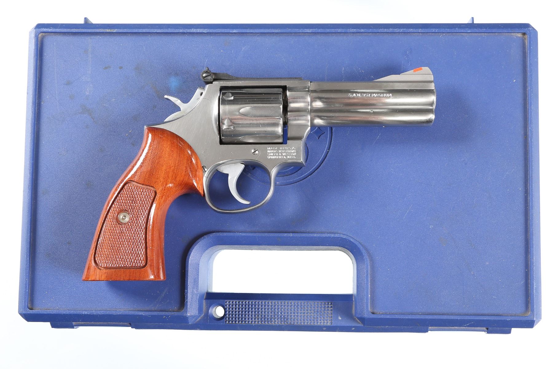 .357 mag Serial # AFH7320 Very good overall condition with minor handling marks, surface wear to cylinder. Includes factory S&W hardcase. Mechanically excellent. Barrel 4" Modern