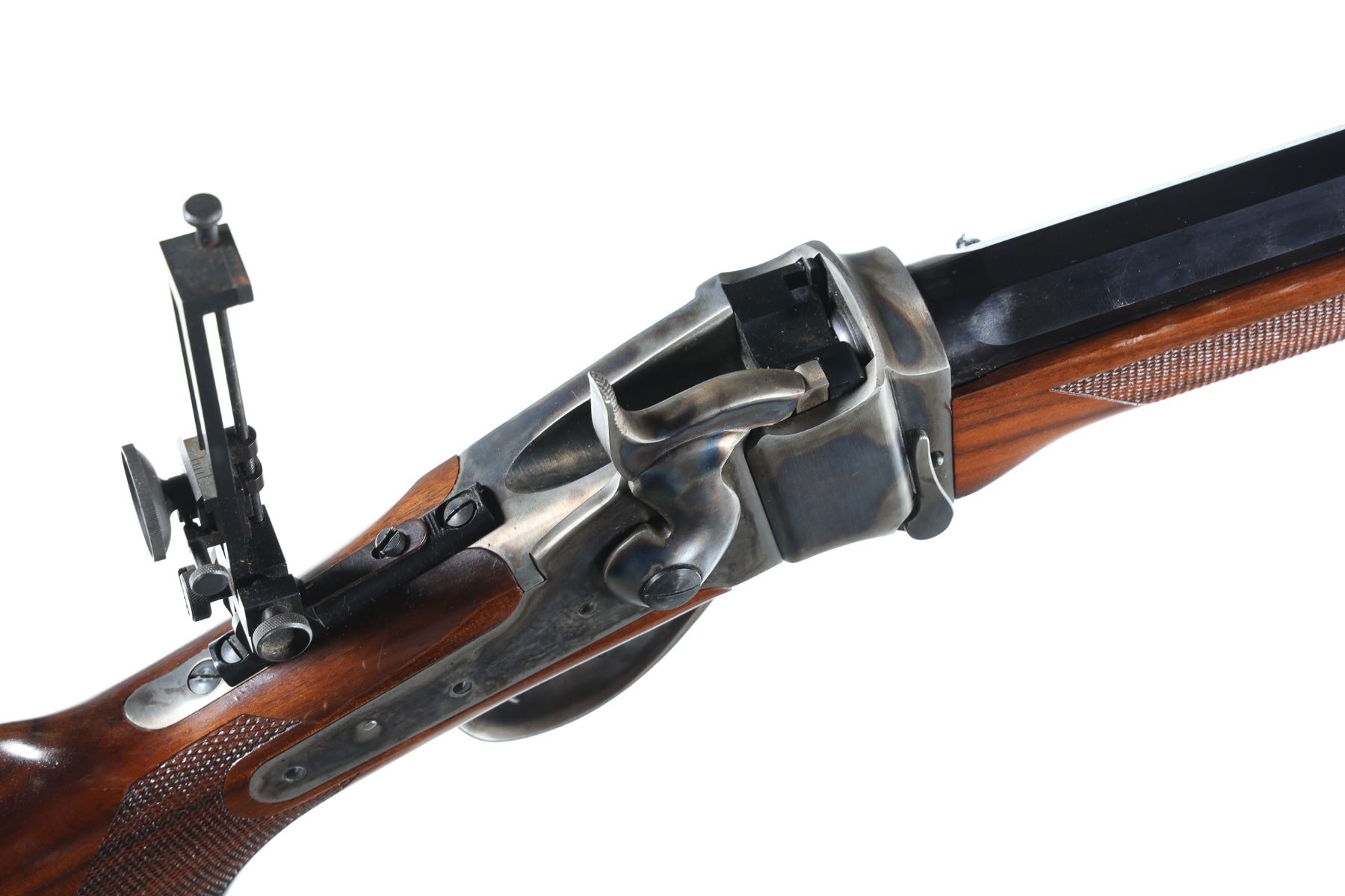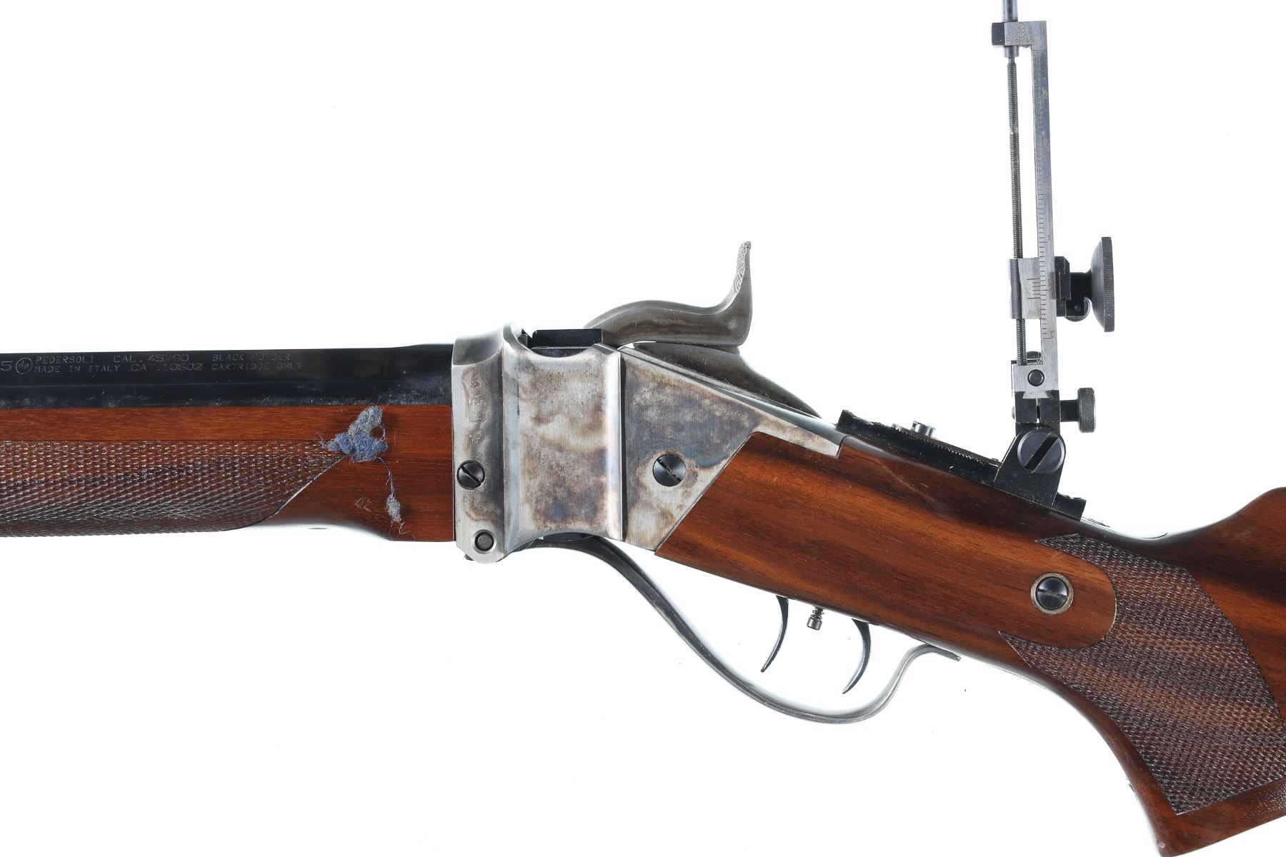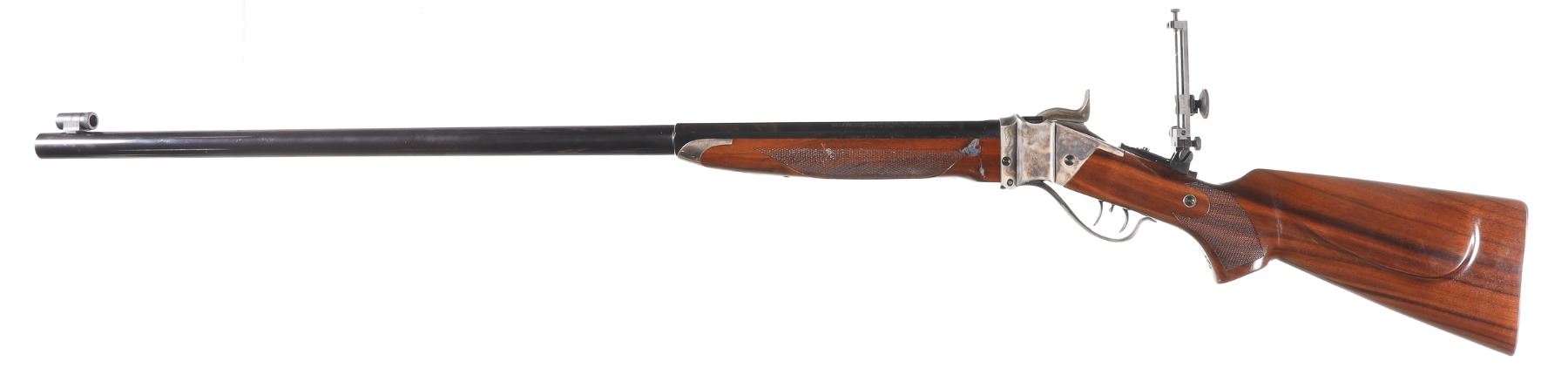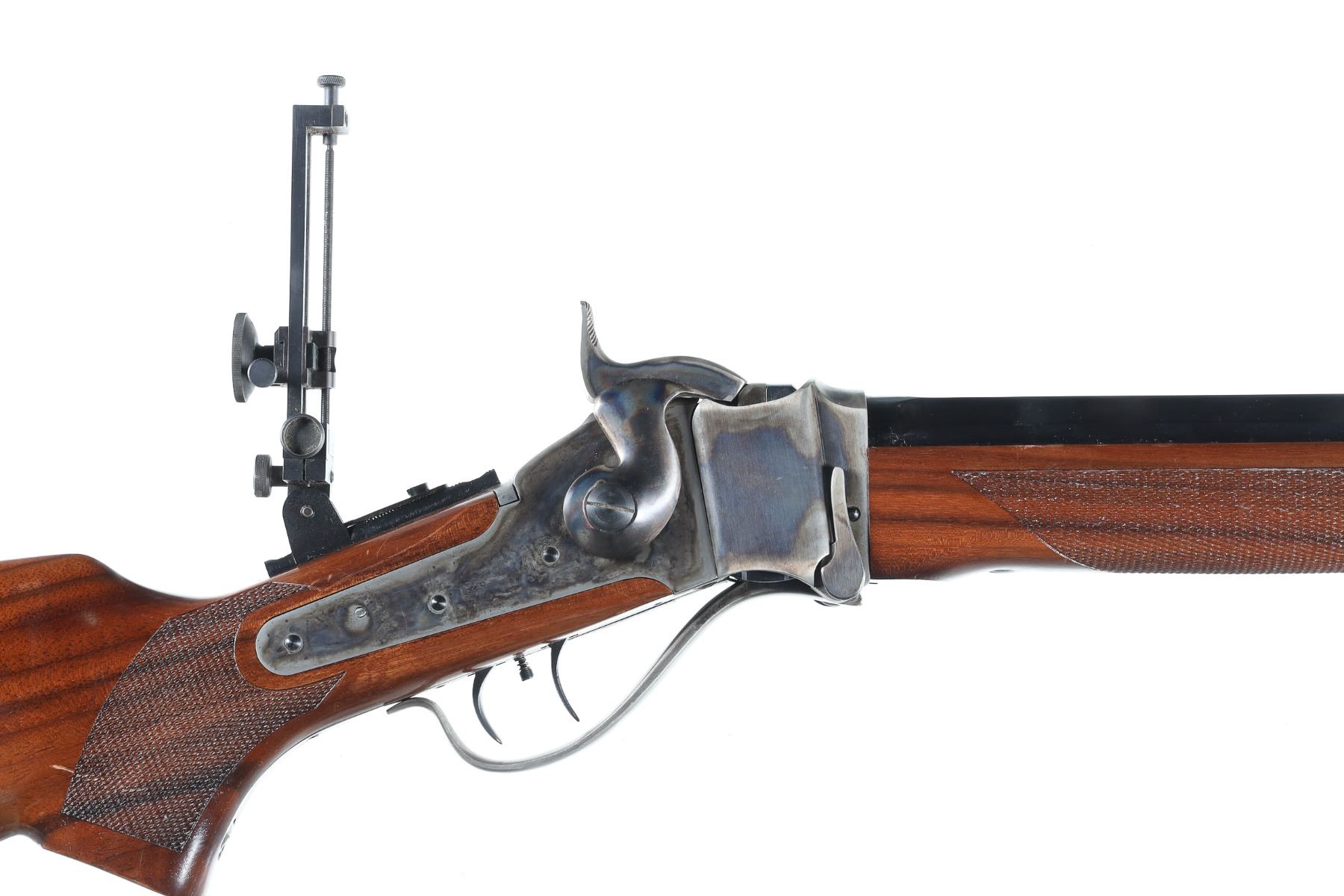 .45-90 Serial # SH27635 Pedersoli 1874 Sharps Long Range caliber 45-90 with 1/2 oct, Bbl. Globe front sight with case color action. Double set triggers Pewter forend tip, Pedersoli long range tang sight. Condition. Excellent with bright bore, little use with a few minor scratches and impressions. Barrel 34" 2006 Modern