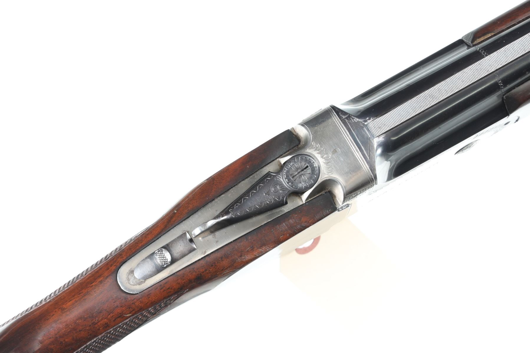 12ga Serial # 11532 Very good overall condition with slight finish wear and minor scratches/bruises in stocks. Choked Full/Mod, 2 3/4" chambers, LOP 14 3/8" over 3/4" non factory recoil pad. Barrel 28" Modern
