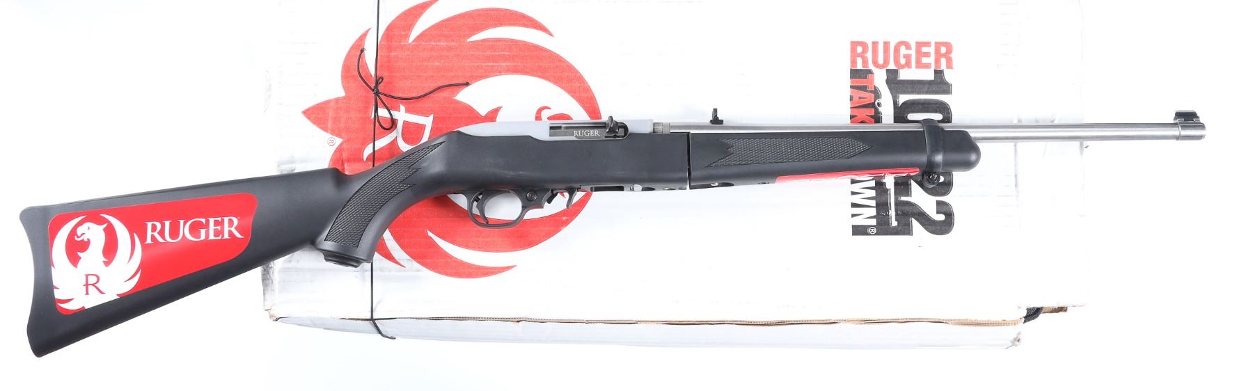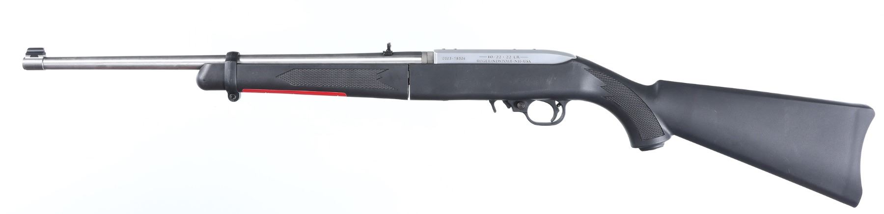 .22 lr Serial # 0023-18326 Ruger Stainless 10/22 Takedown rifle .As new with factory box numbered to gun and soft case. Barrel 18 1/2" Modern