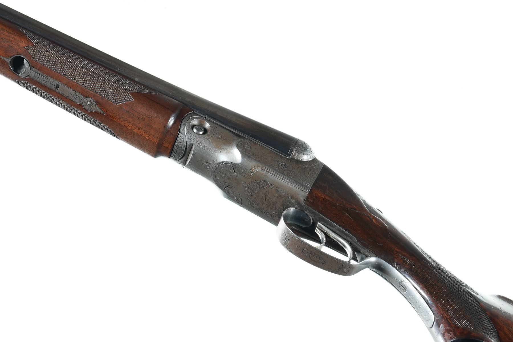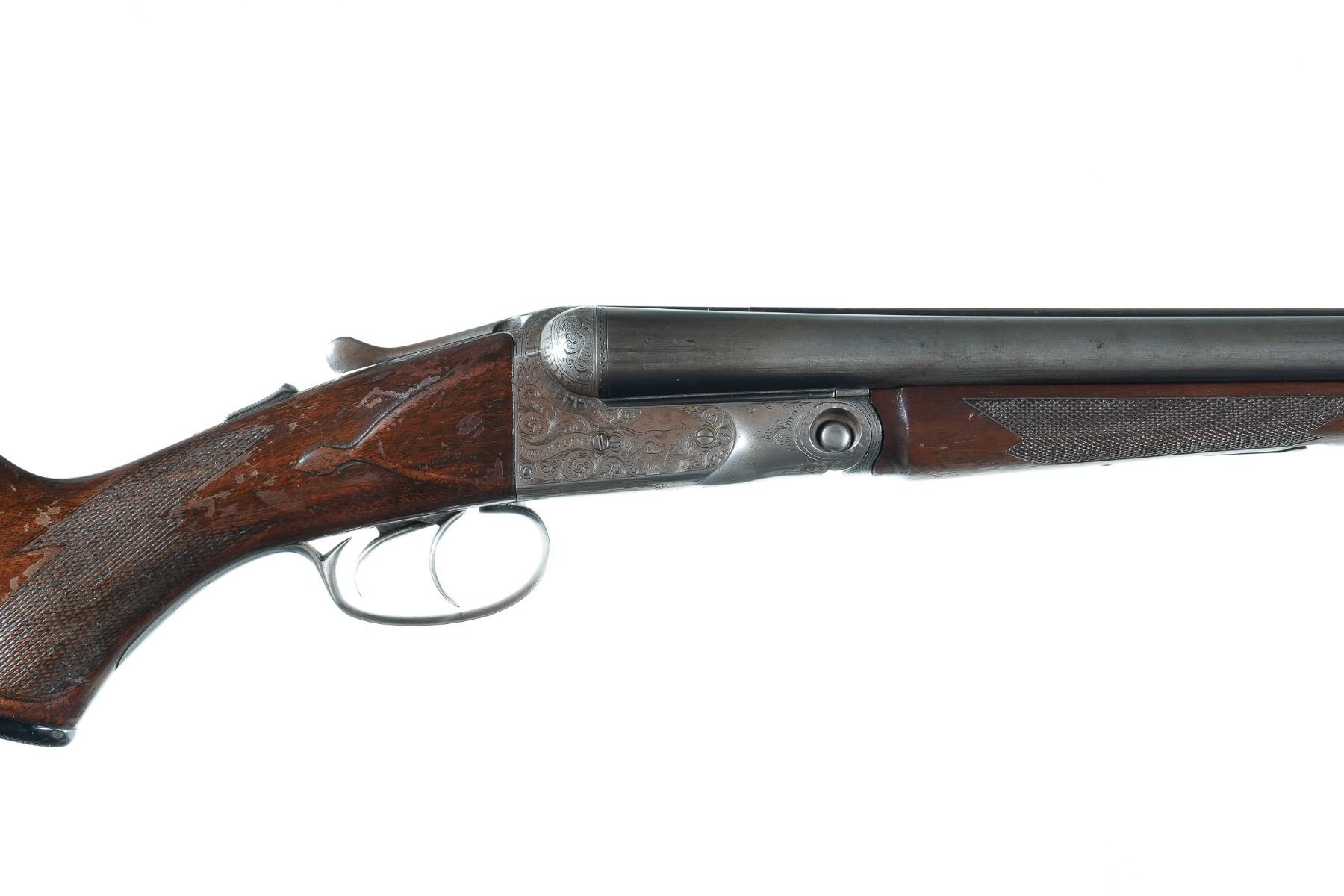 12ga Serial # 229381 Manufactured in 1928. Chambers measured 2 5/8" with ejector, chokes measured improved cylinder/improved modified, and 14 3/4" LOP. Fine condition with excellent bores and mechanics. Some wood finish impressions and losses of finish Barrel 28" C&R
