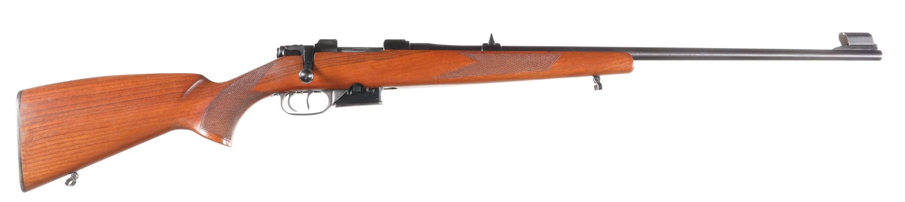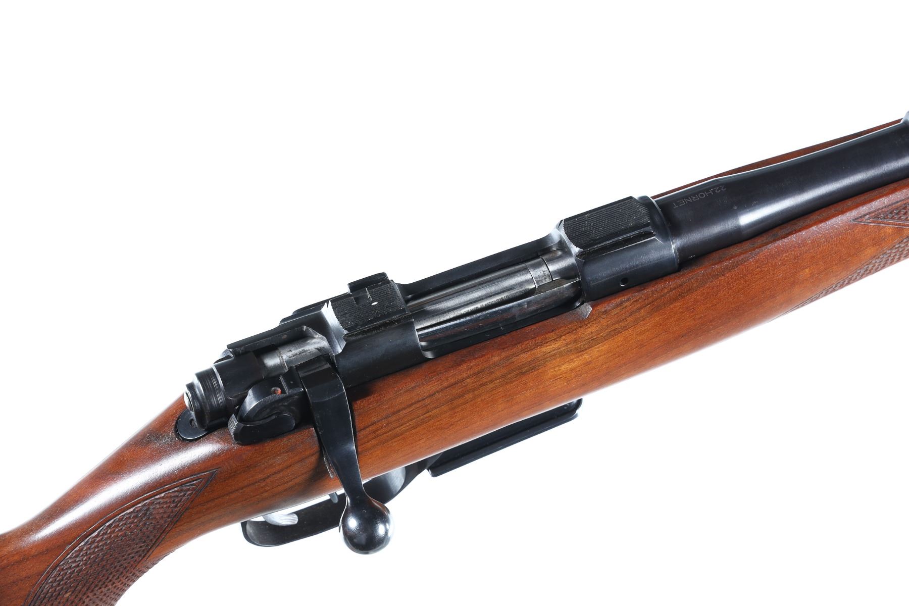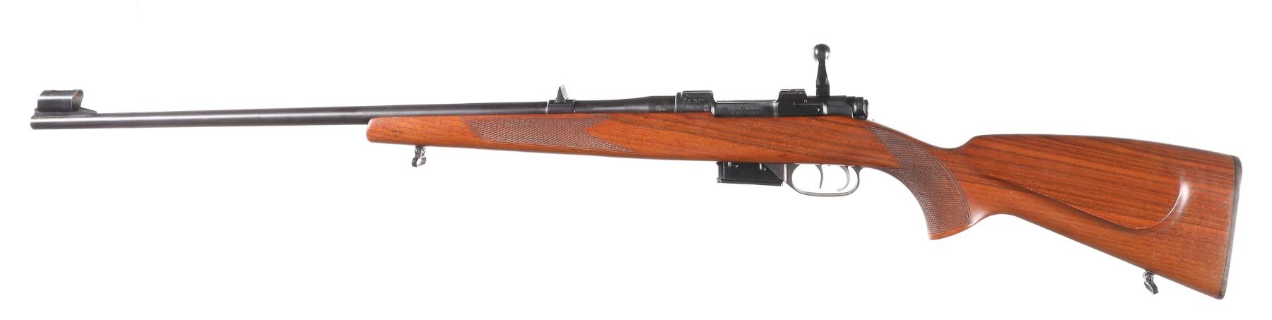 .22 Hornet Serial # 46514 CZ 527 Bolt action rifle cal, 22 Hornet with 22" Bbl with open sights and double set triggers. Varnished walnut stock with 5 round detachable magazine. Condition. Excellent with bright bore and mechanically excellent. Barrel 22" 1990 Modern