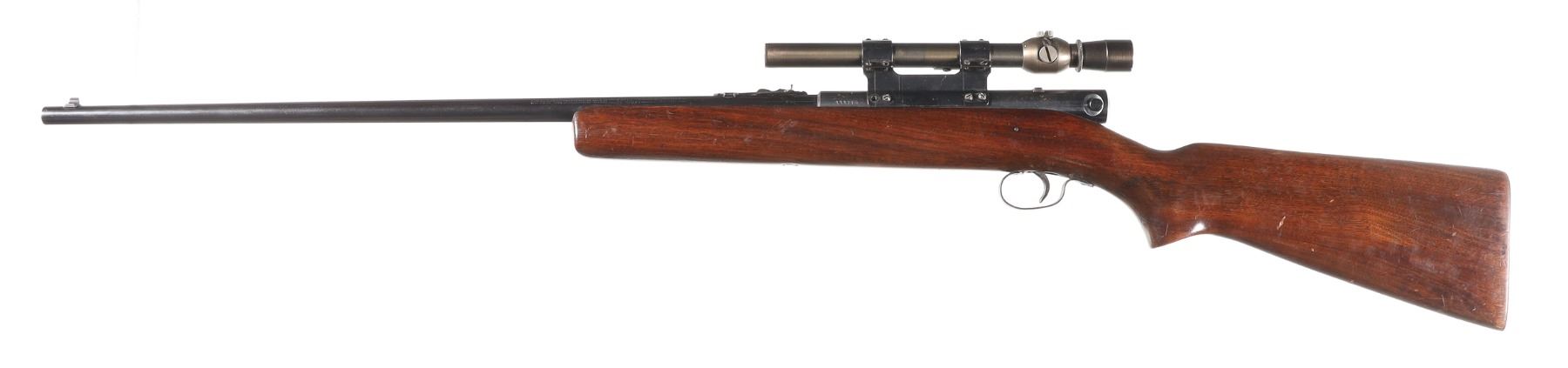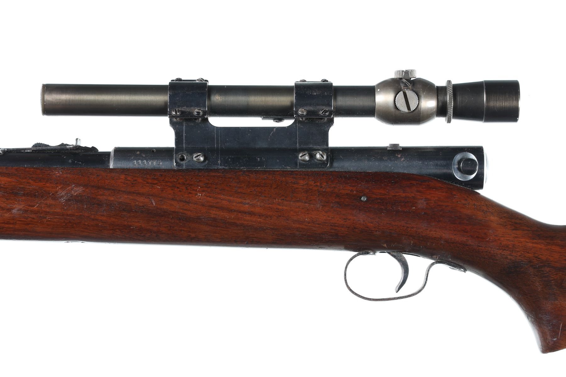 .22 Short Serial # 111775 Rare Winchester Model 74 Cal 22 Short only . Semi automatic with walnut stock and period 4X scope. Condition Very good with fine bore and some light oxidation on exterior. Stock is good with some bruises.