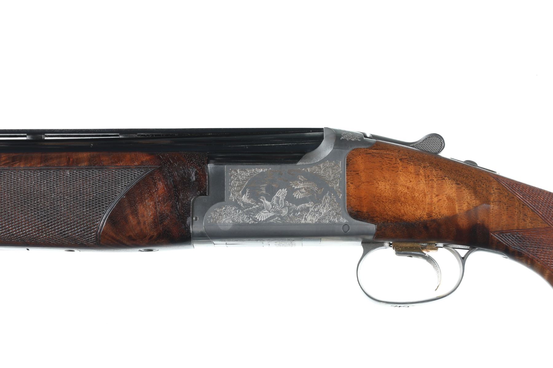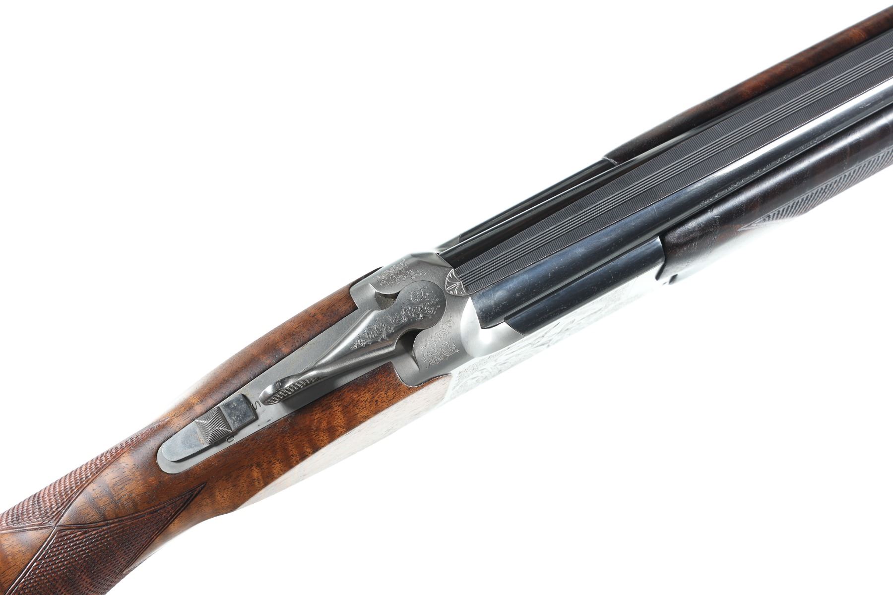 12ga Serial # 37076NR Browning GTI Ultra with 30" vent rib Bbl's with 2 3/4" chamber and Invector choke system with Teague extened Full & Mod installed. Single selective adjustable trigger with ejectors. Varnished walnut pistol grip stock with adjustable comb. 15" LOP. Condition. Very fine with moderate use with 99% finish remaining. Excellent stocks and mechanically fine. Barrel 30" 1997 Modern