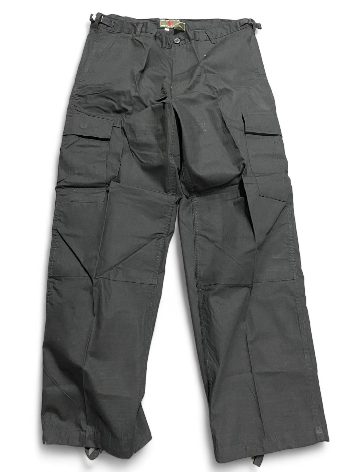 Quality functional BDUs, 100% cotton Rip-Stop, double-reinforced seats and knees, adjustable waist tabs, drawstring bottoms.