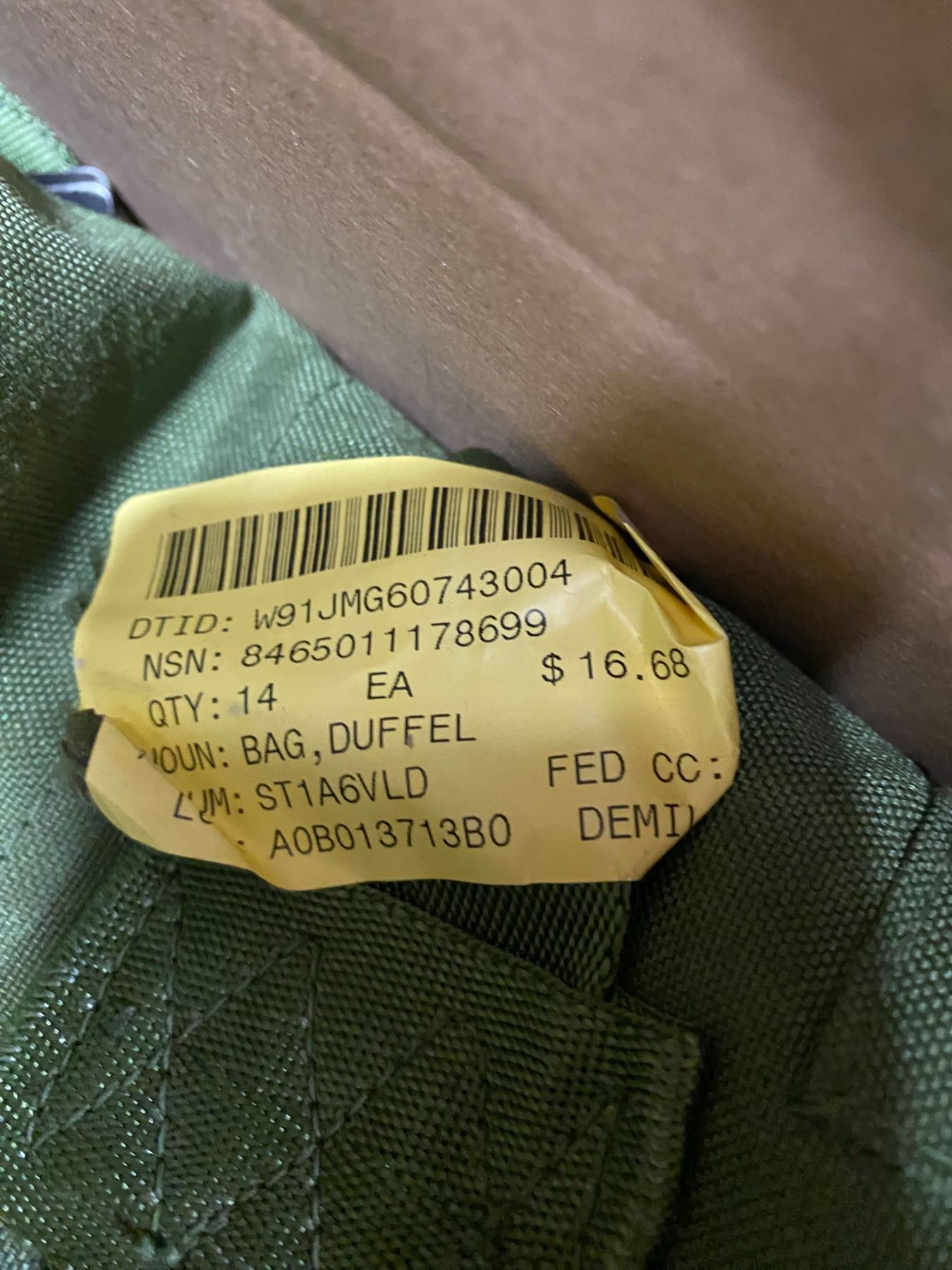 Lot 808 1X Duffel Bag, OD Green, USGI Issue NSN Model # 8465-01-117-8699