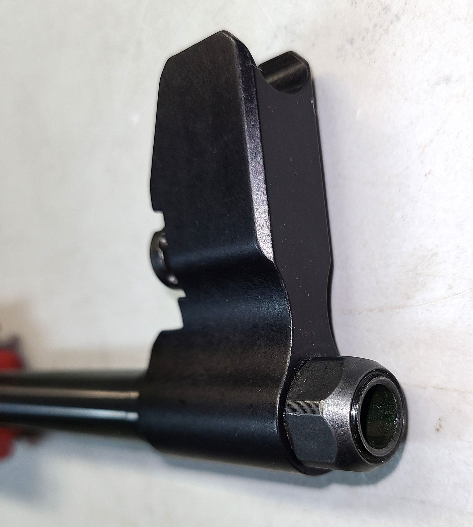 A 16.25-inch barrel is adorned with a hinged ghost ring rear sight and a removable
