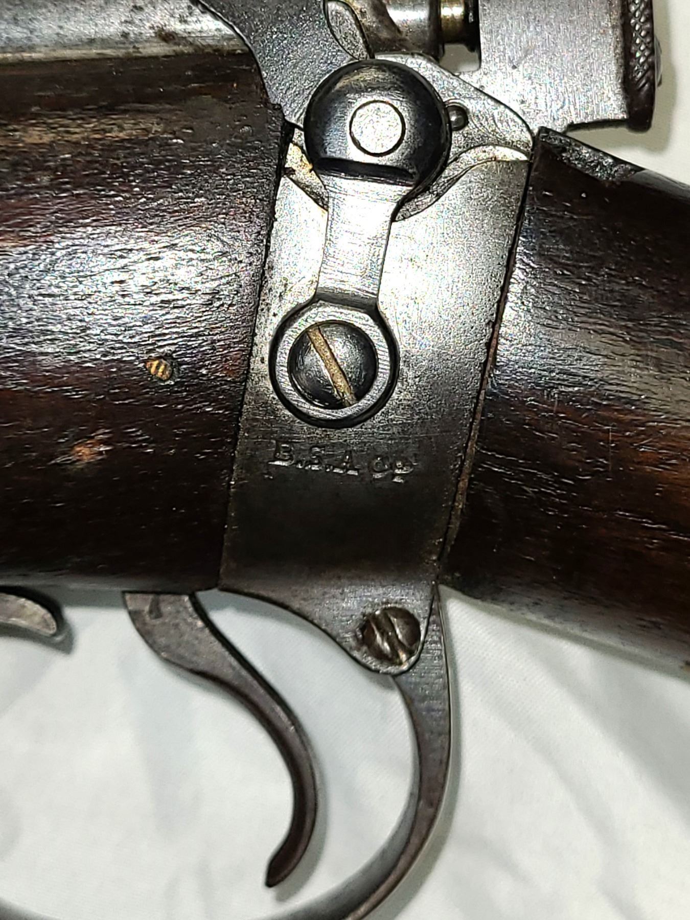 Has the BSA mark on top of the barrel and on left side of stock socket..