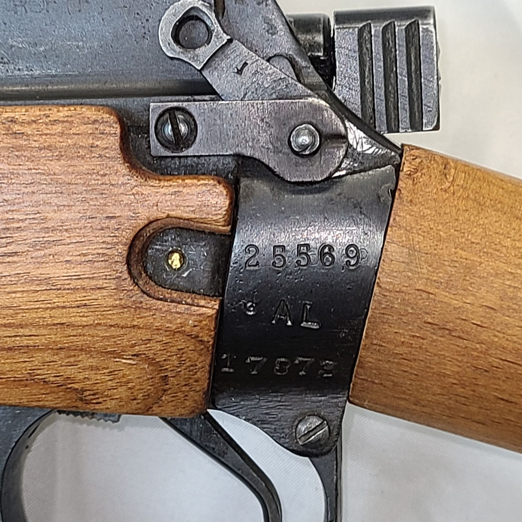 its serial number, was stamped into the left rear receiver bridge just below the rear
