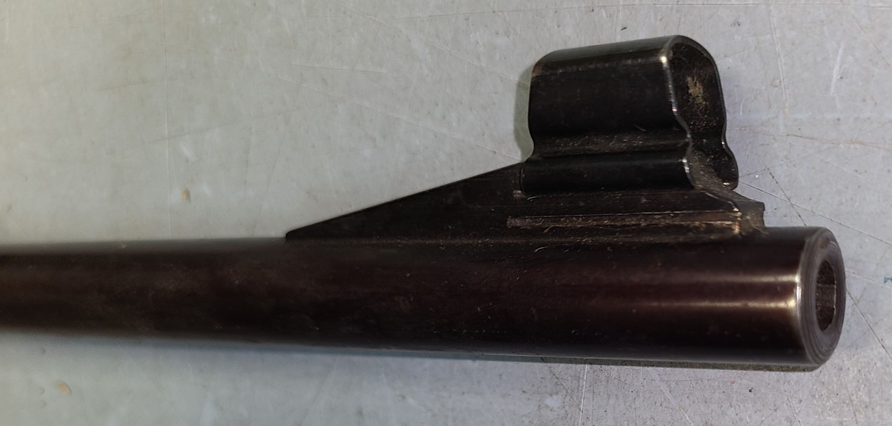 Set into nice wood stock that has no cracks. 24 inch long barrel
