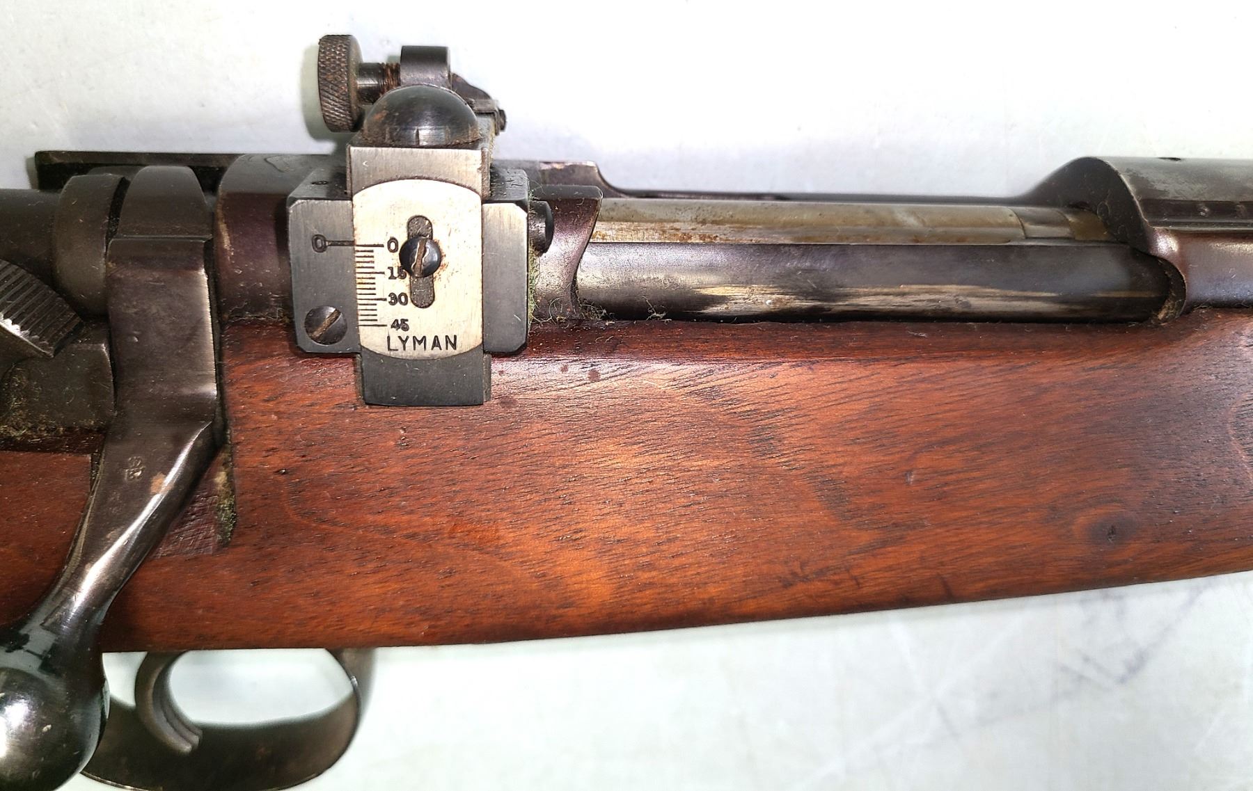 Lot 59 BSA 303 Brit Enfield Bolt Action Rifle c/w Lyman Peep Sight