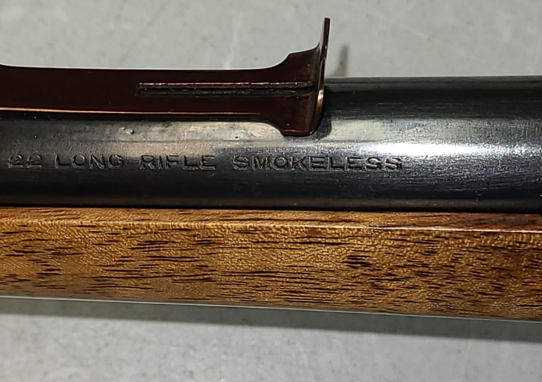 22 Long, 488 mm barrel, two piece plain walnut forearm and pistol grip stock. Magazine