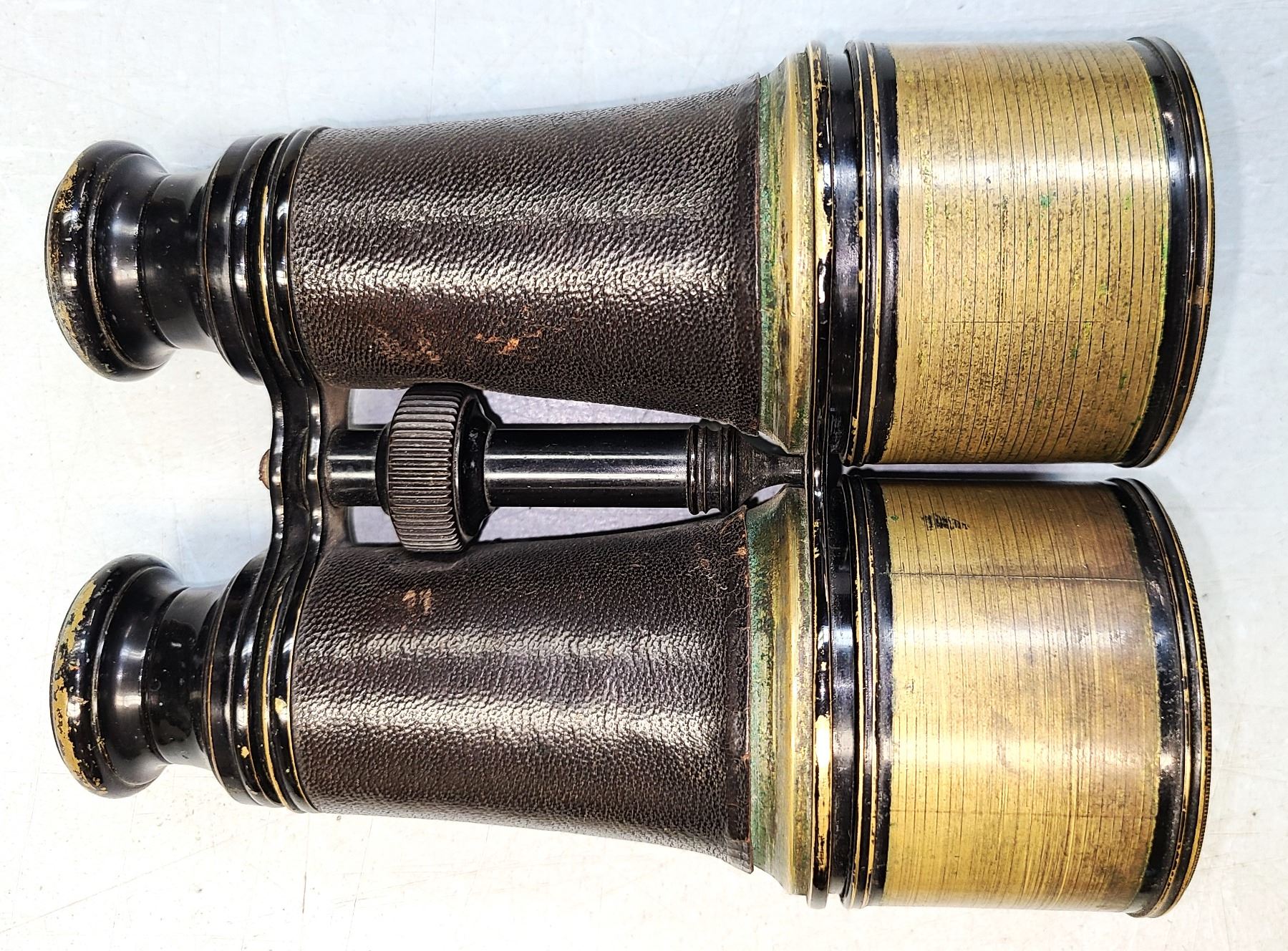 A pair of Antique Binoculars 19th century made from brass and clad in leather,